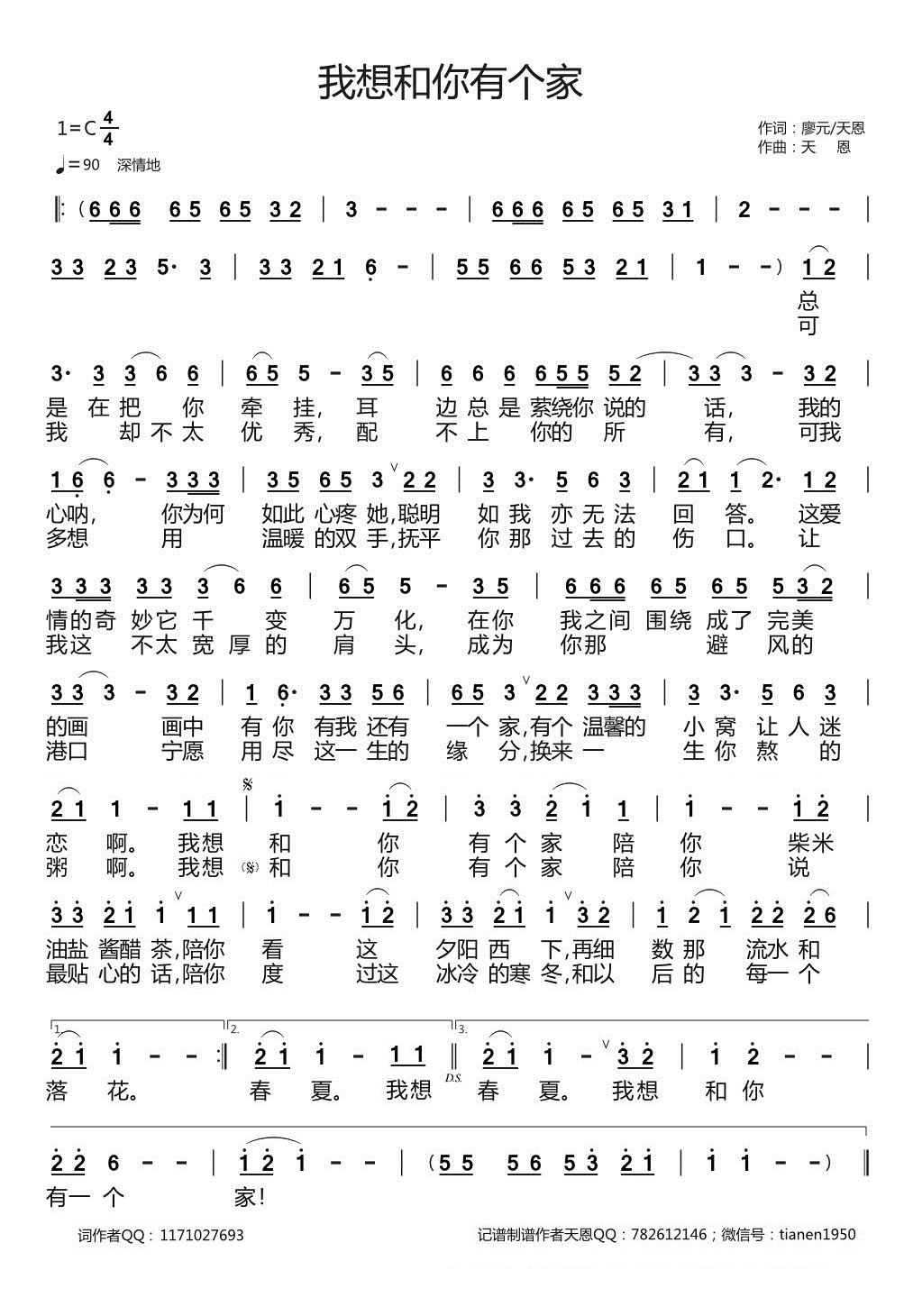 > 我想和你有个家 天恩原创