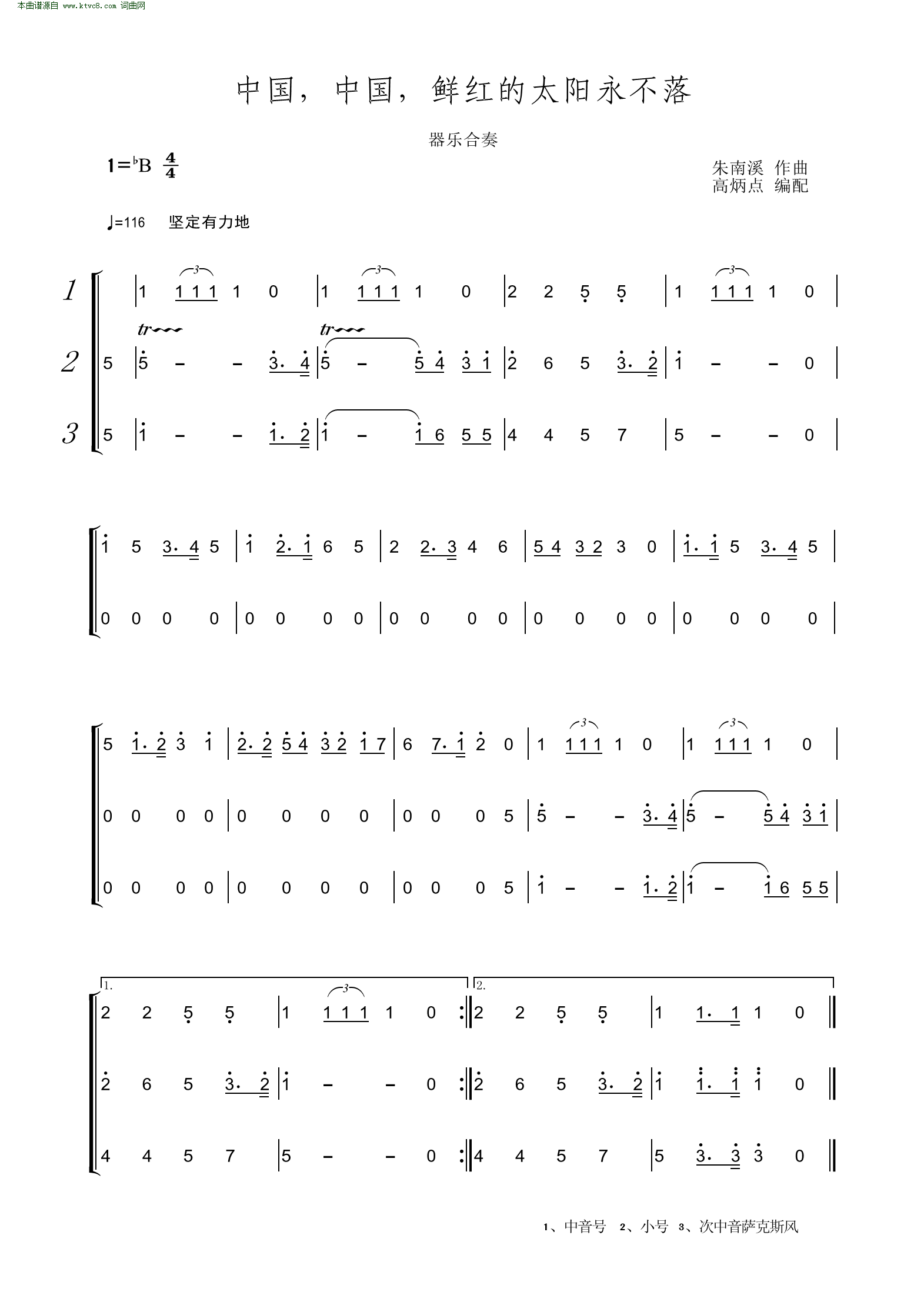 > 中国中国鲜红的太阳永不落 器乐合奏