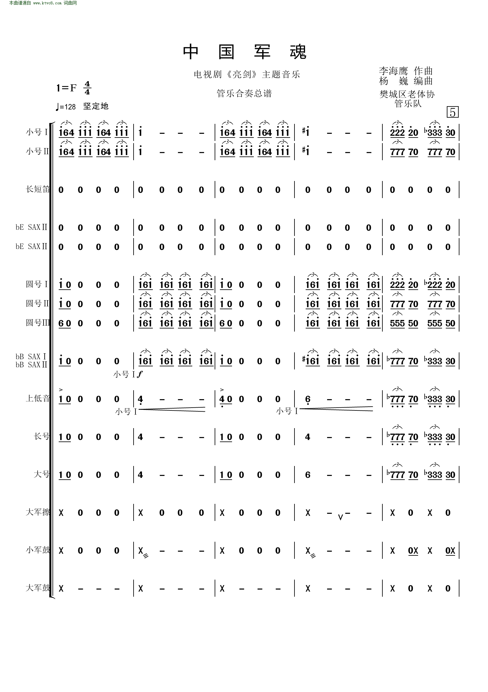 中国军魂 电视剧 亮剑 主题音乐 管乐合奏