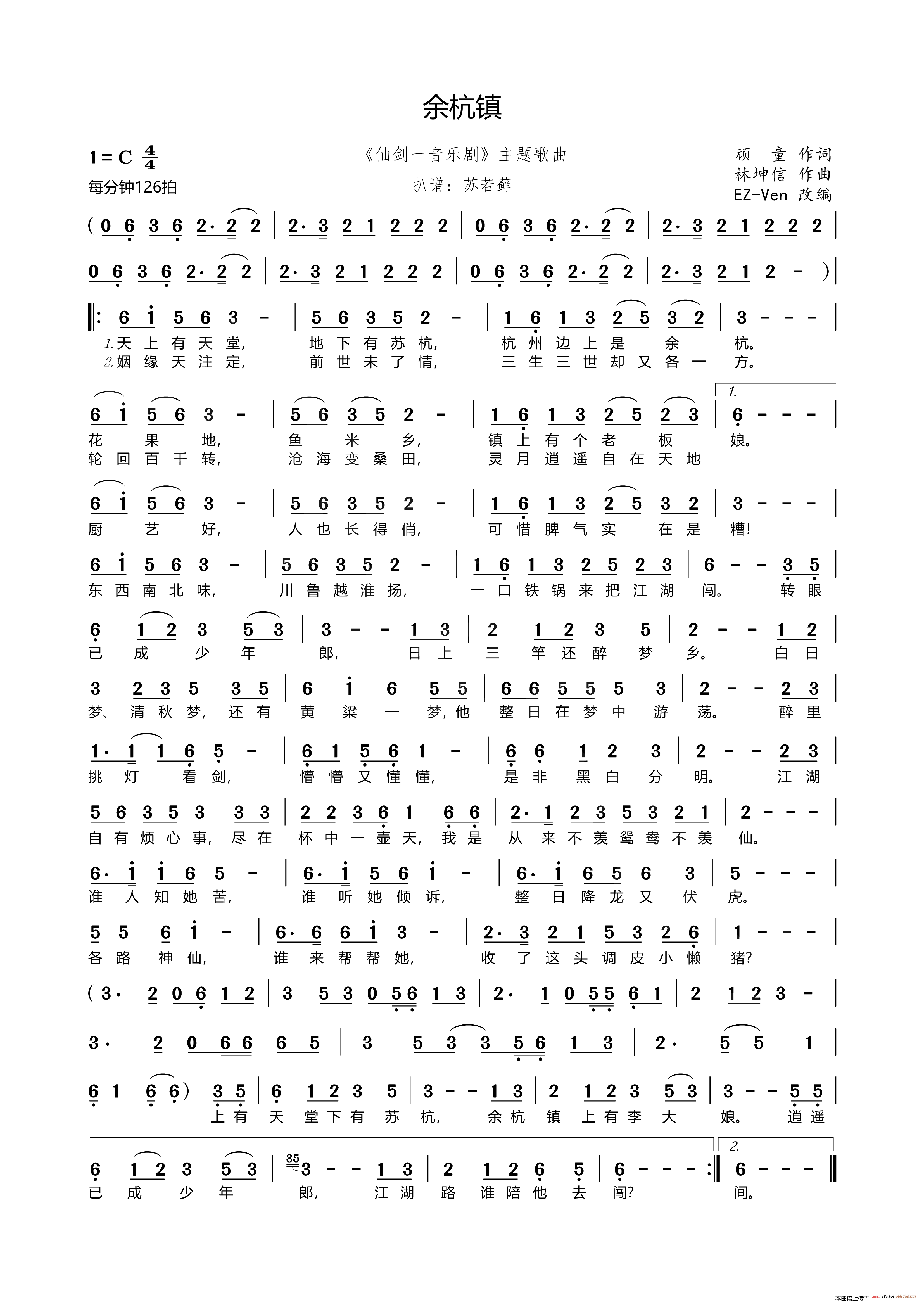 > 余杭镇 仙剑一音乐剧 主题歌曲