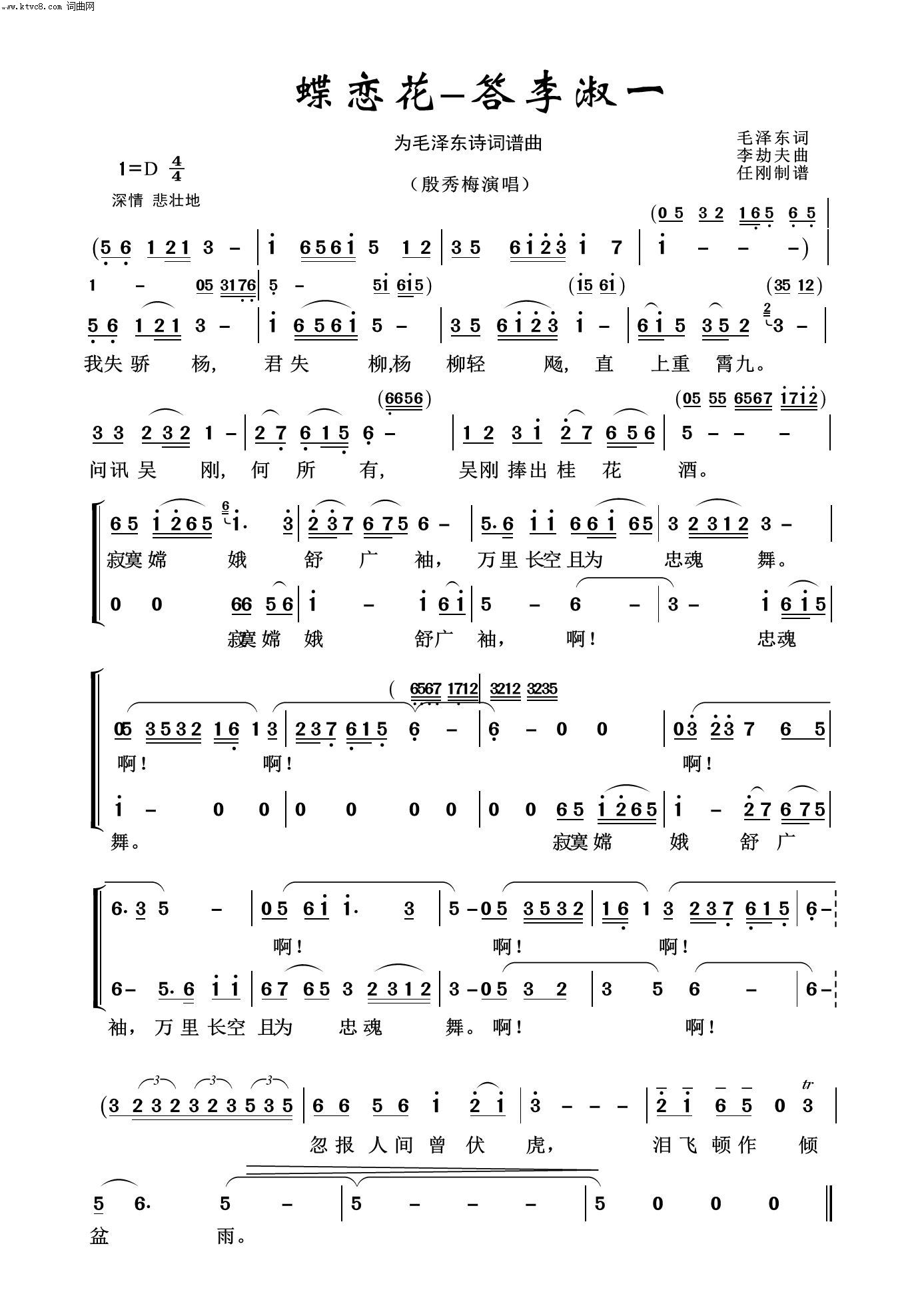 蝶恋花 答李淑一 毛泽东颂100首