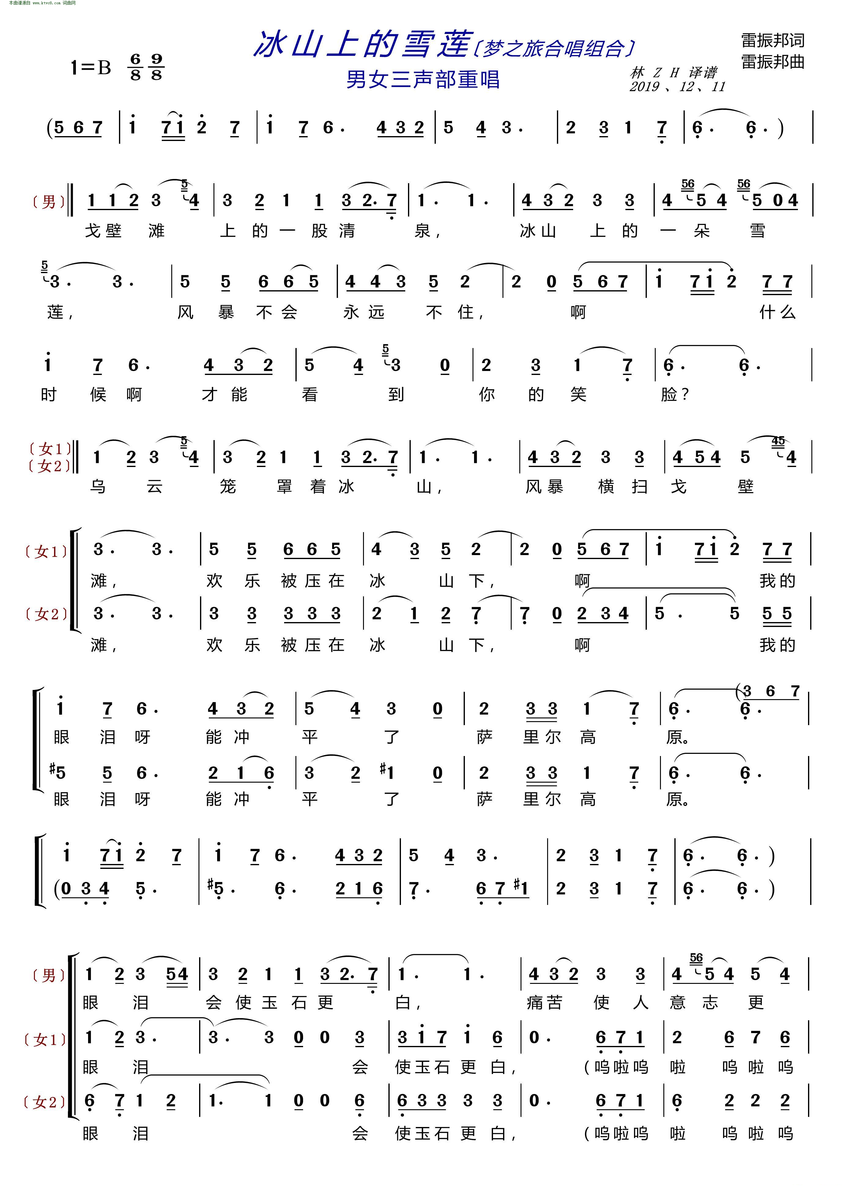 > 冰山上的雪莲 〔梦之旅合唱组合〕 男女三声部重唱