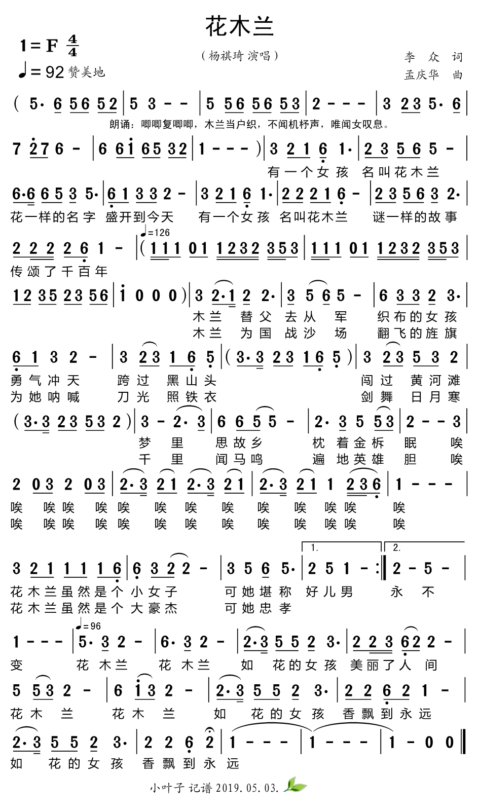 > 花木兰