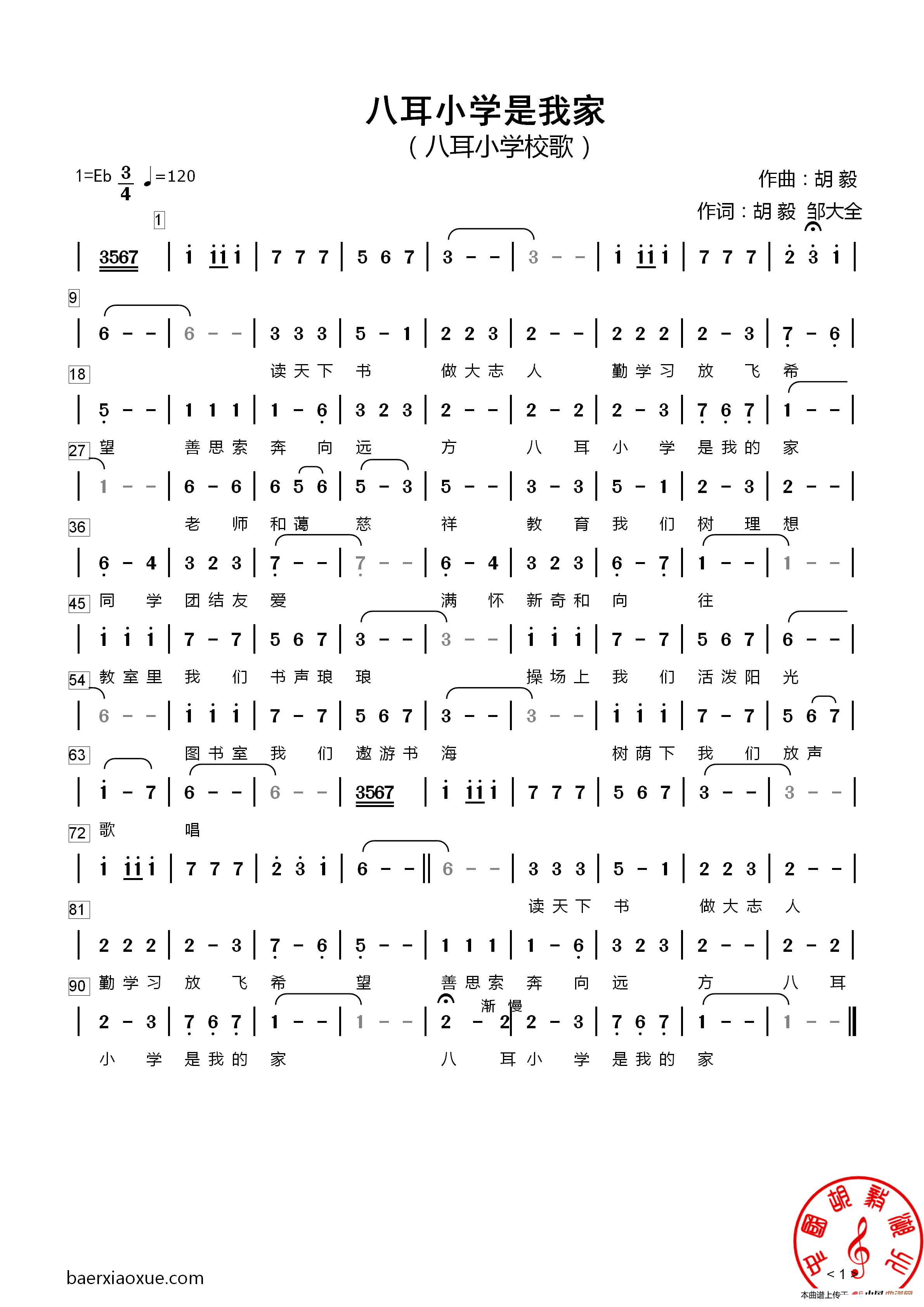 > 八耳小学是我家 校歌