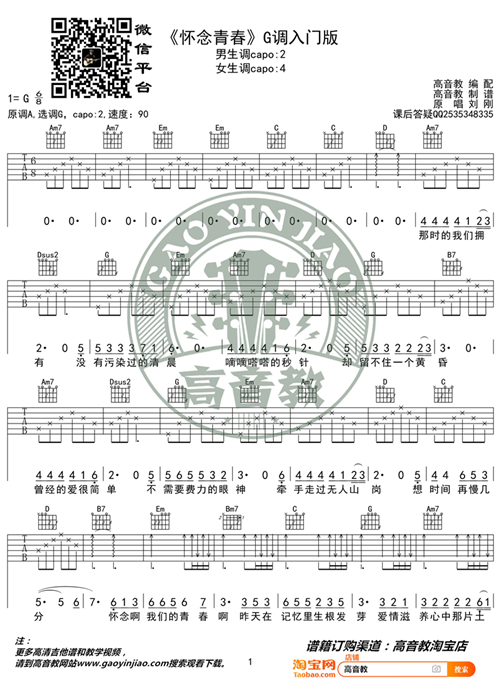 > 怀念青春 G调入门版 高音教编配 猴哥吉他教学