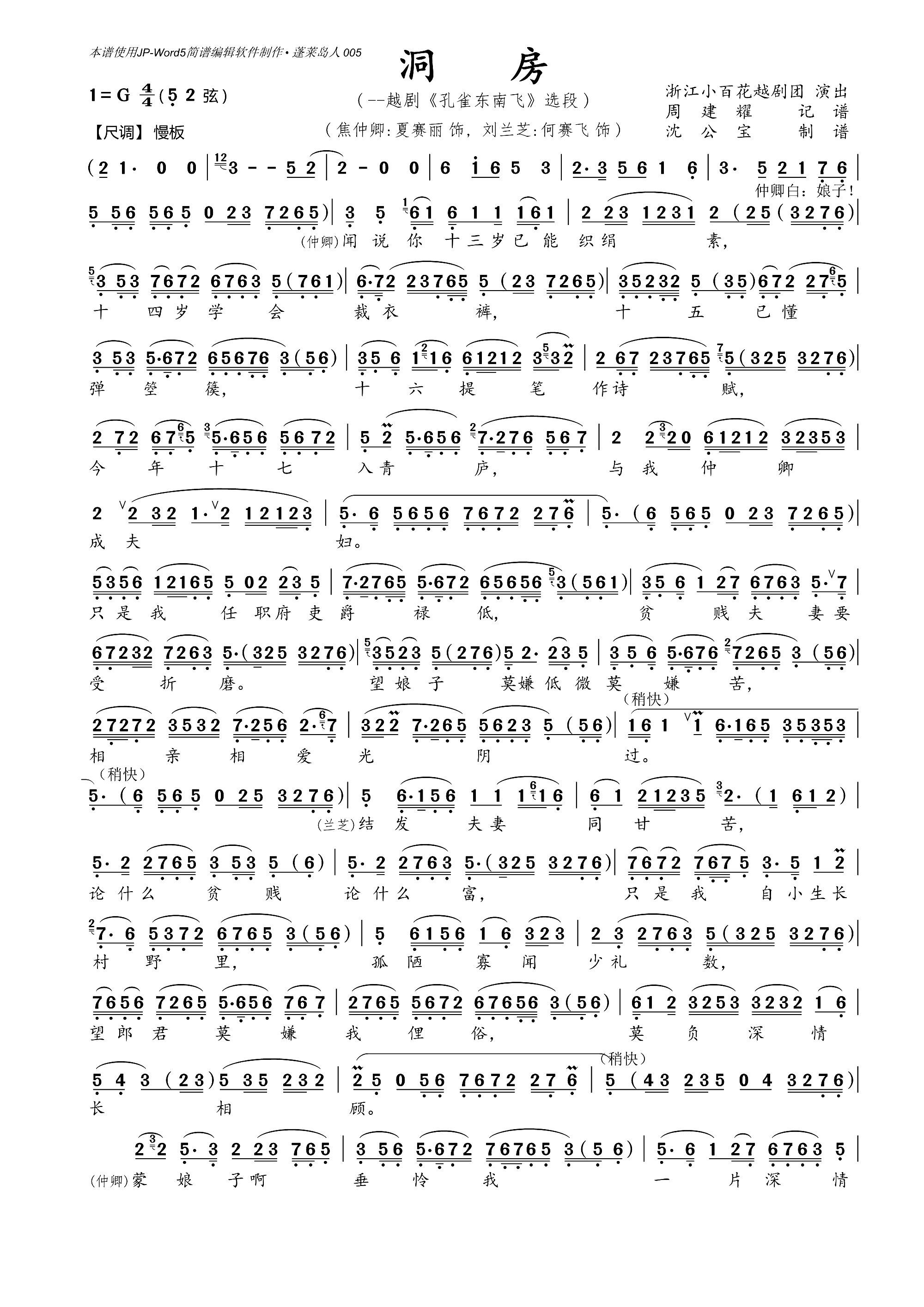 简谱网 > 越剧谱 > 洞房 越剧 孔雀东南飞 选段