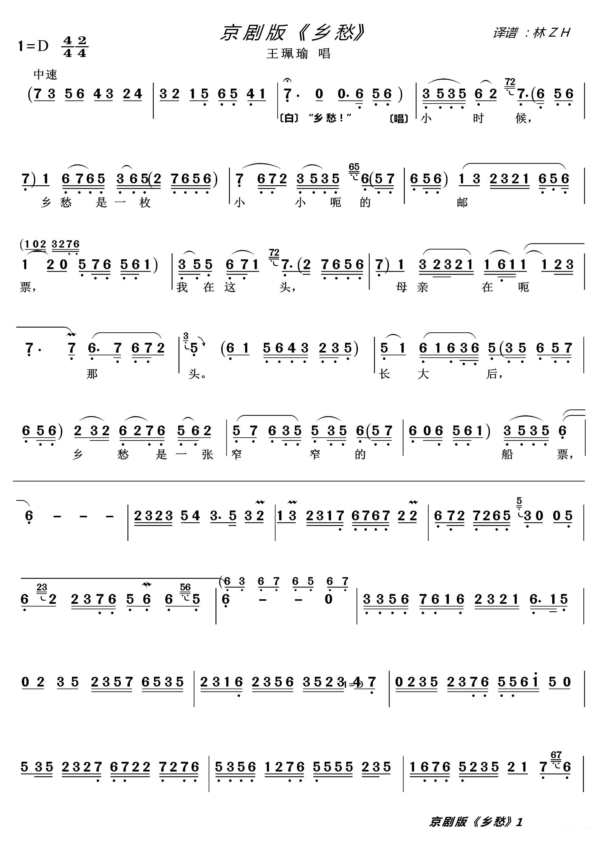> 京剧版 乡愁