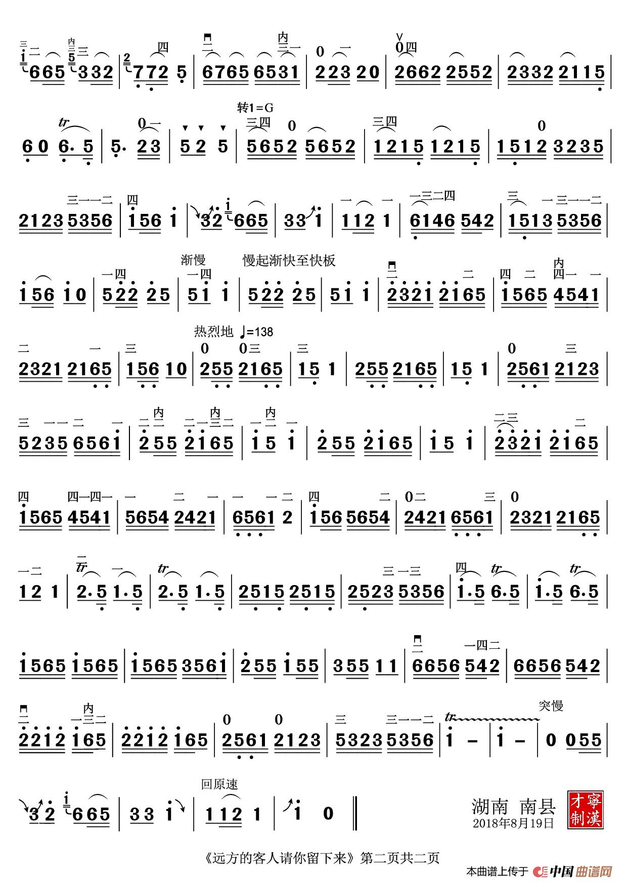 > 远方的客人请你留下来 朱昌耀改编
