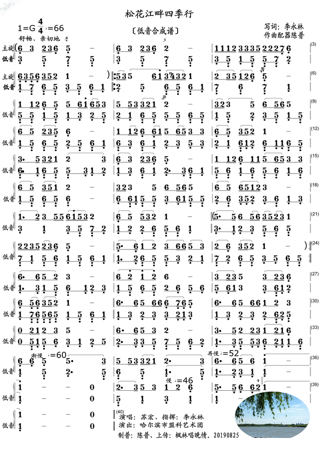 > 松花江畔四季行 低音合成谱