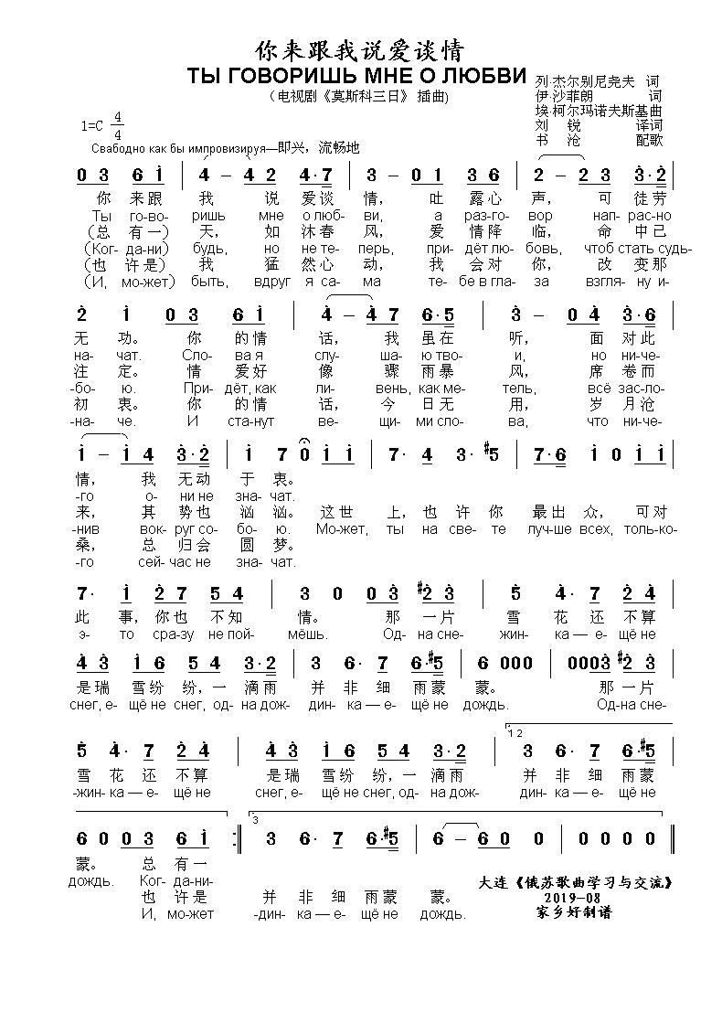 > 你来跟我说爱谈情ТЫ ГОВОРИШЬ МНЕ О ЛЮБВИ 中俄