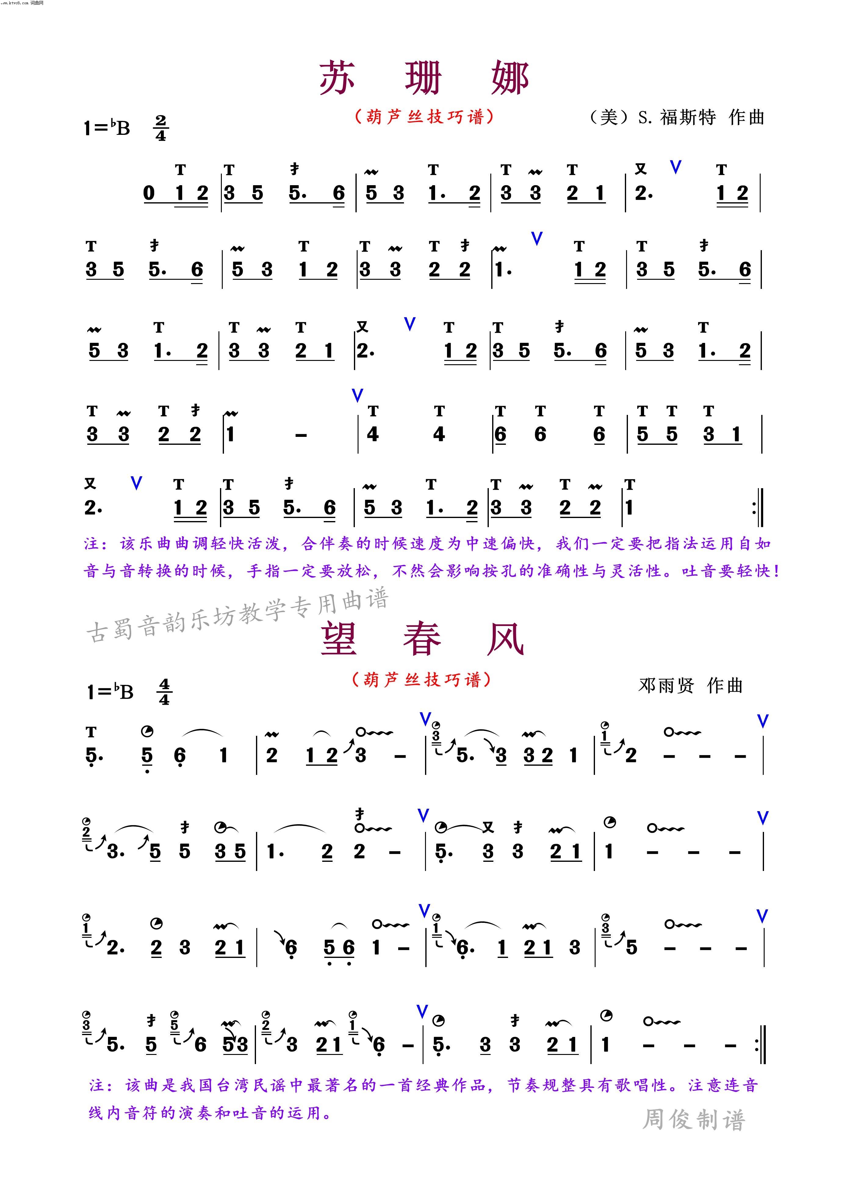> 苏珊娜 望春风 葫芦丝技巧谱