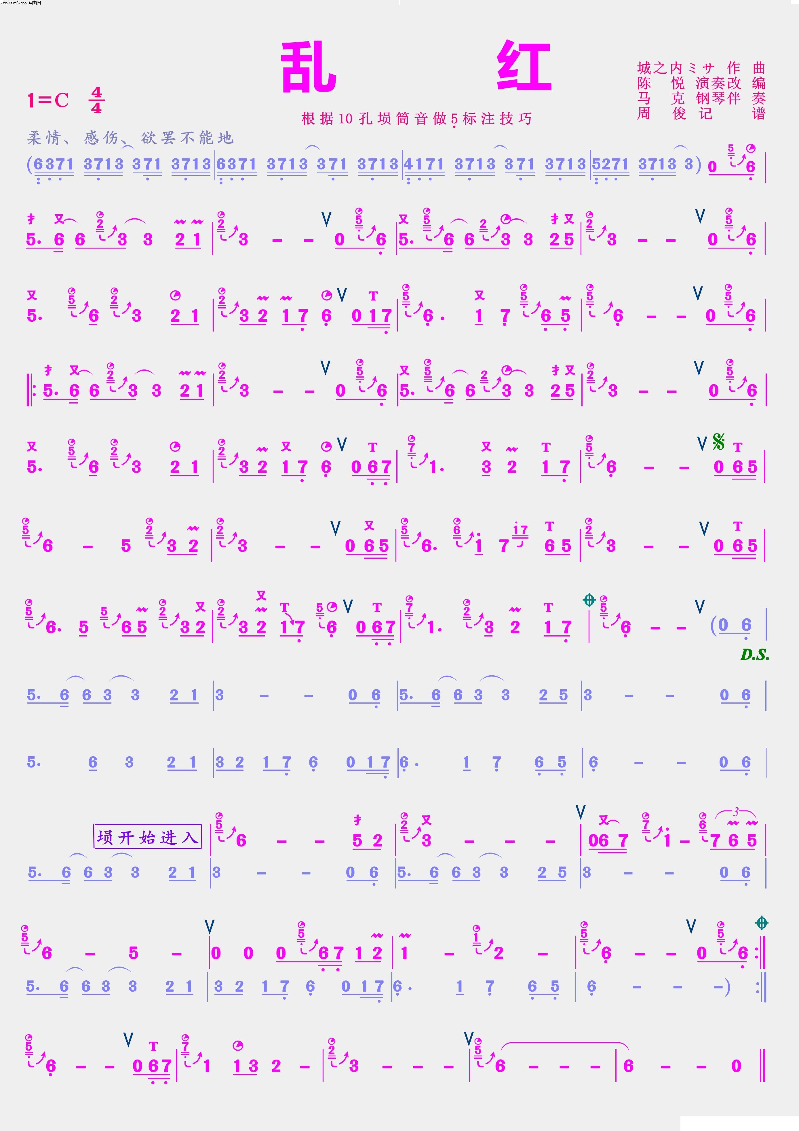 > 乱红 埙技巧谱