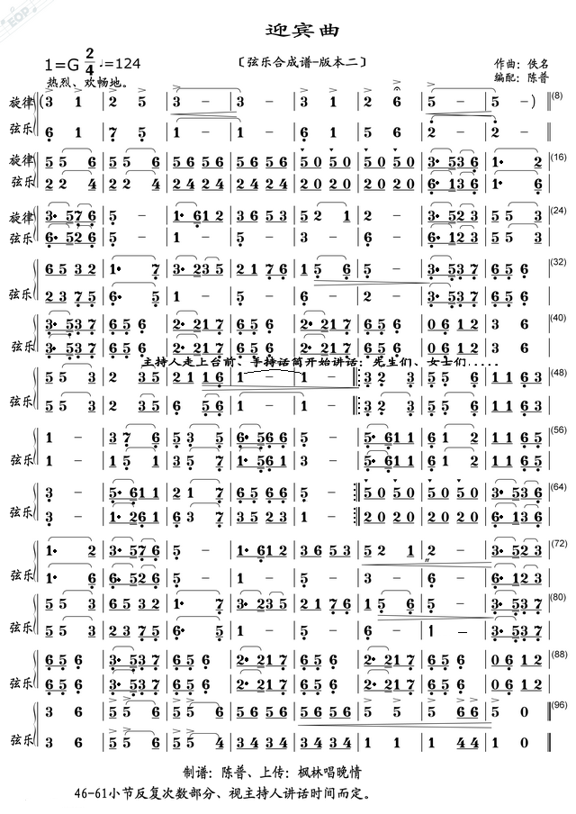 迎宾曲 弦乐合成谱本二