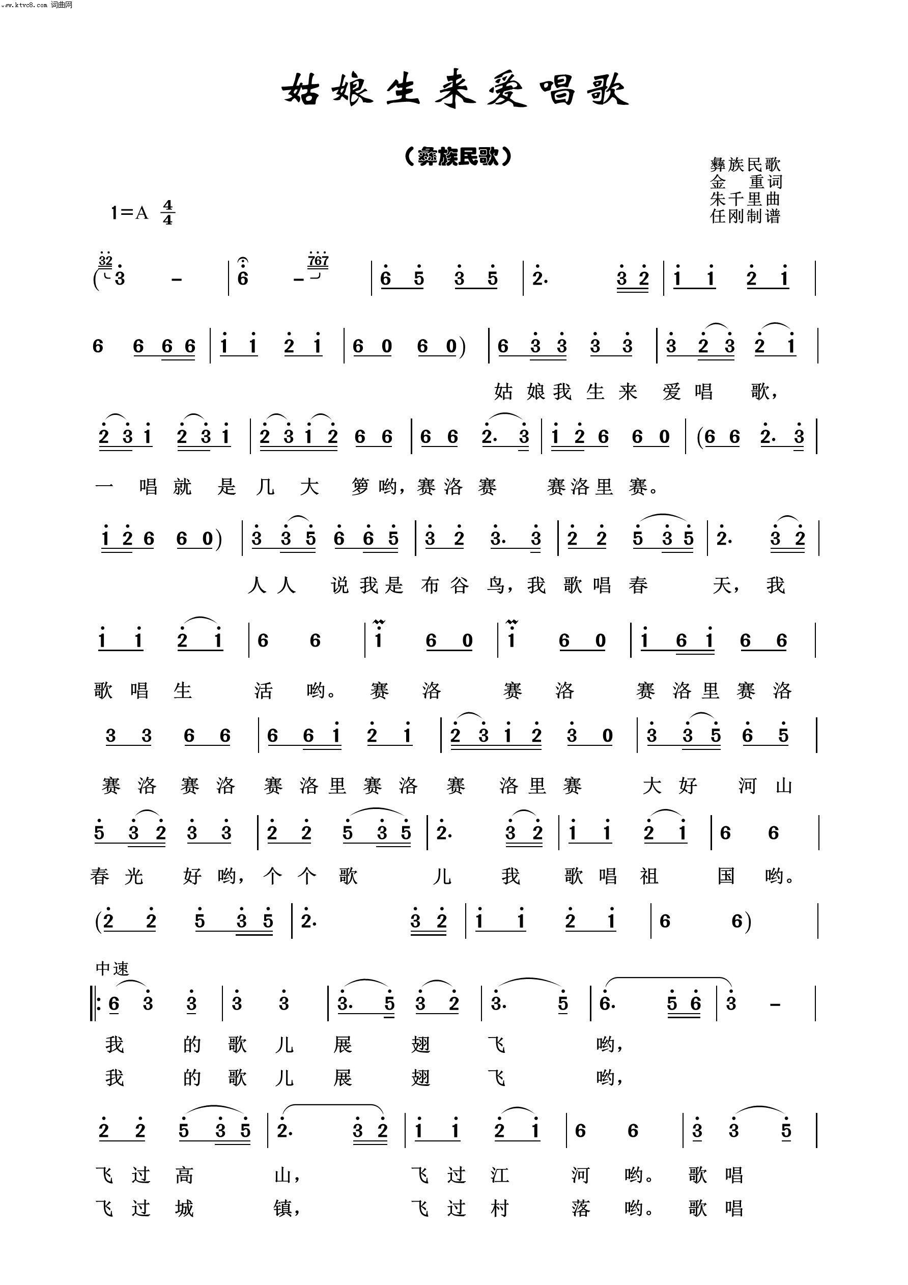 简谱网 > 歌谱 > 姑娘生来爱唱歌 经典民歌100首
