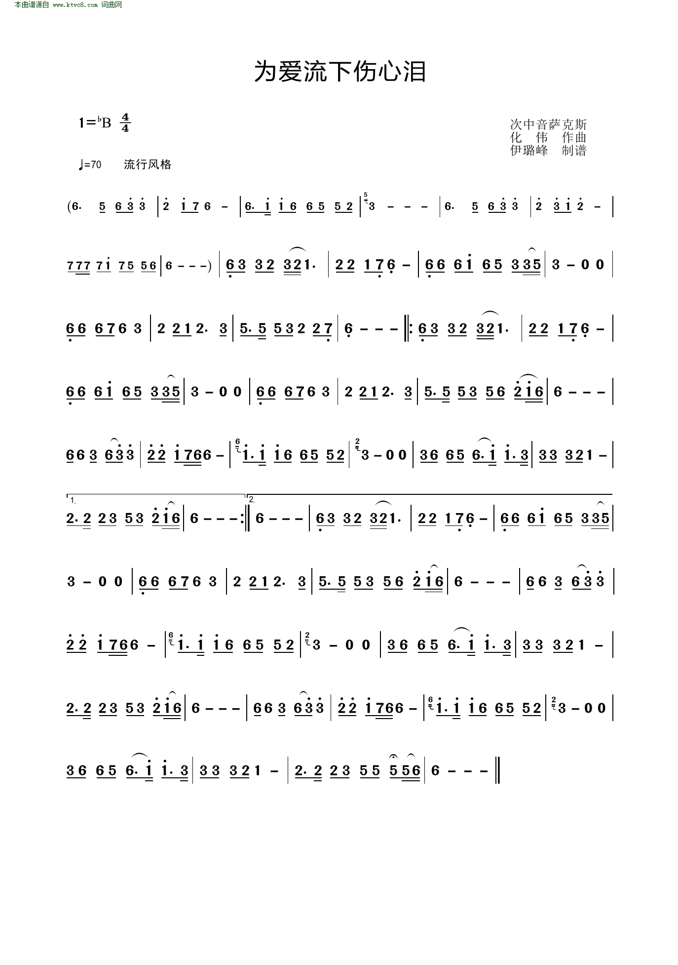 > 为爱流下伤心泪 次中音萨克斯