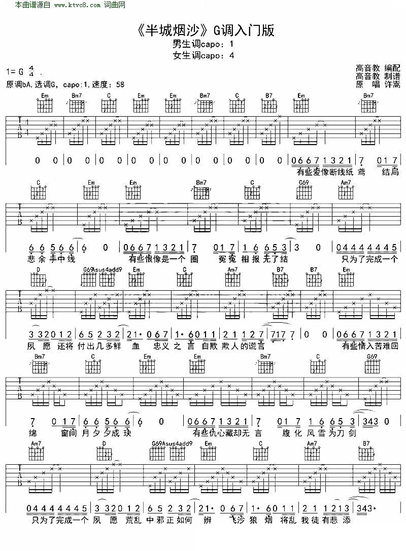 半城烟沙 G调入门版