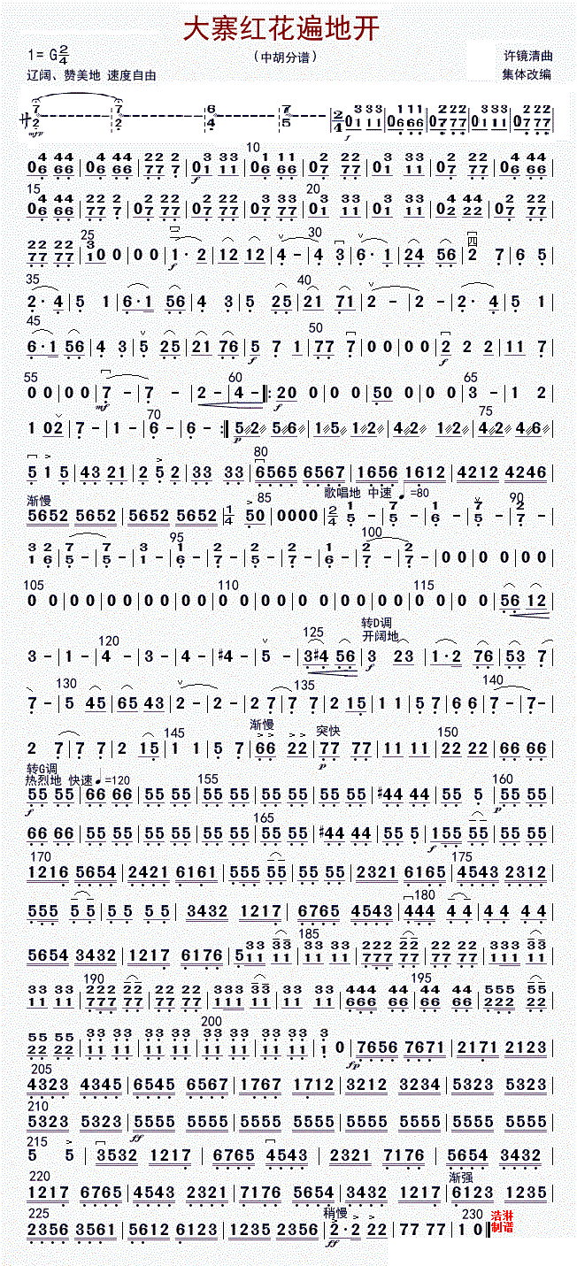 > 大寨红花遍地开 中胡 修改版