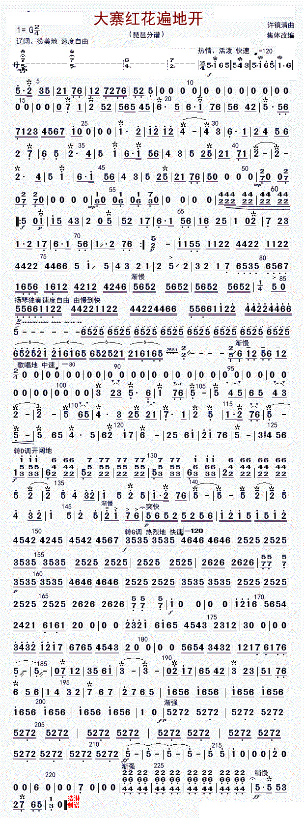 > 大寨红花遍地开 琵琶 修改版