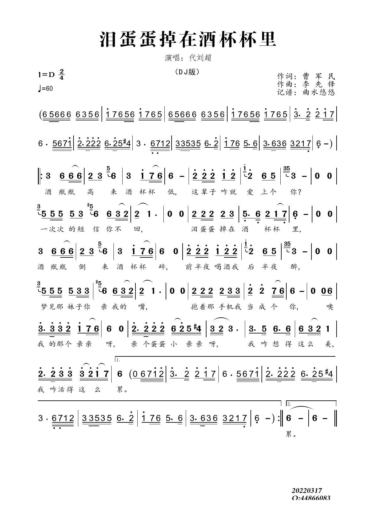 > 泪蛋蛋掉在酒杯杯里 代刘超DJ版