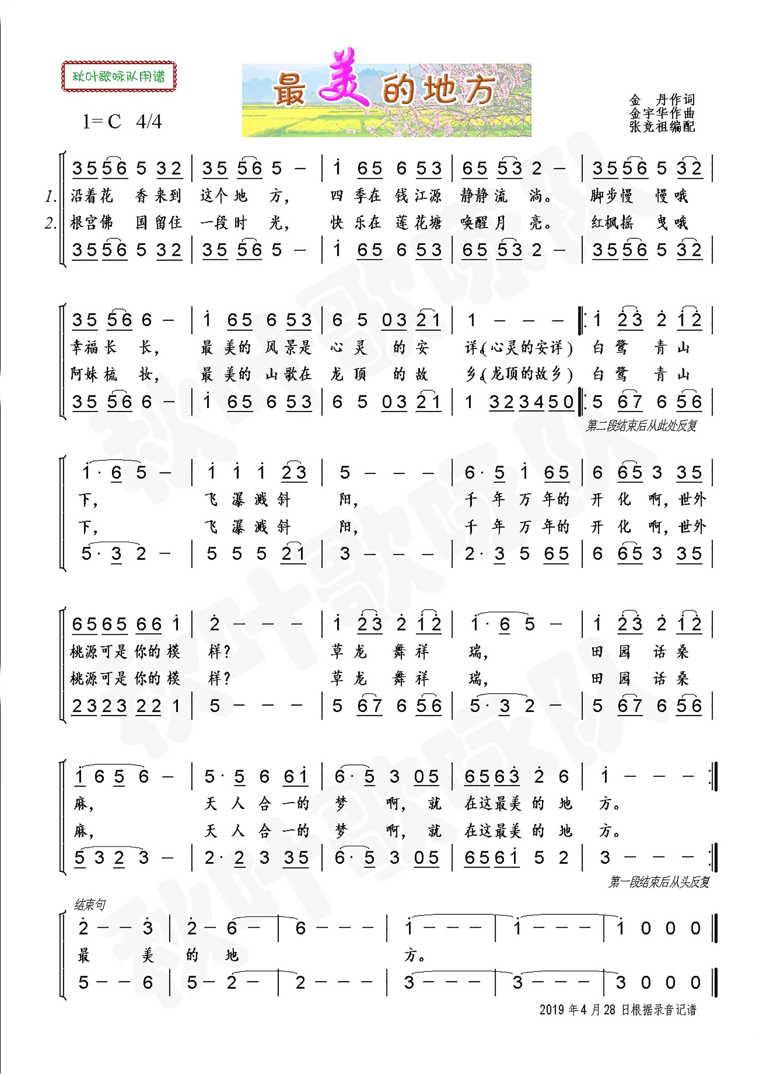 > 最美的地方 女声小合唱 张竞祖改编