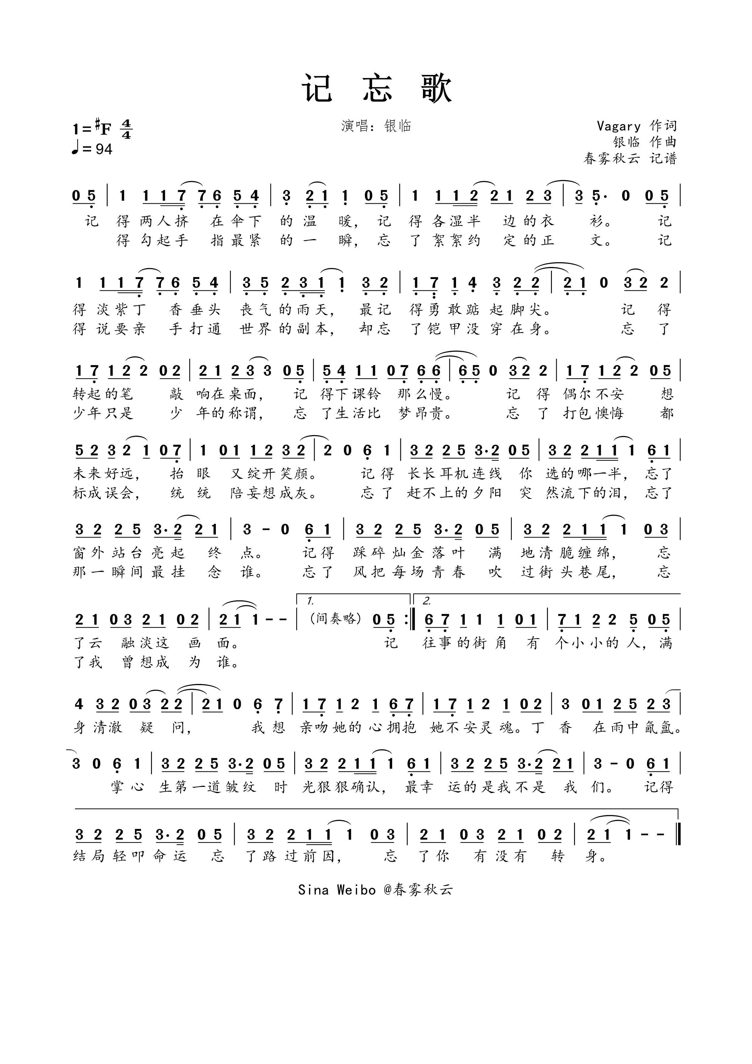 > 记忘歌