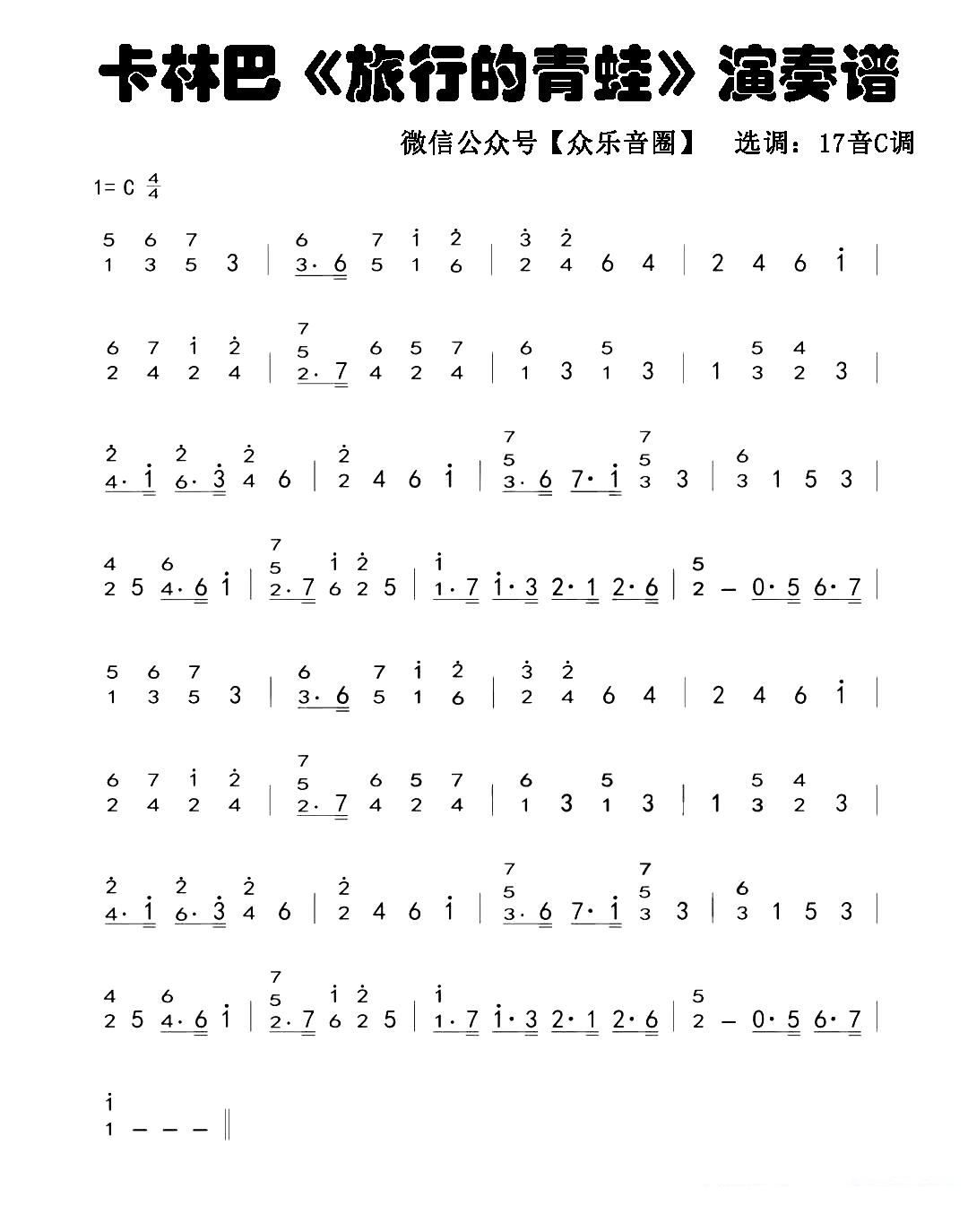 旅行的青蛙 和弦 拇指琴卡林巴琴和弦