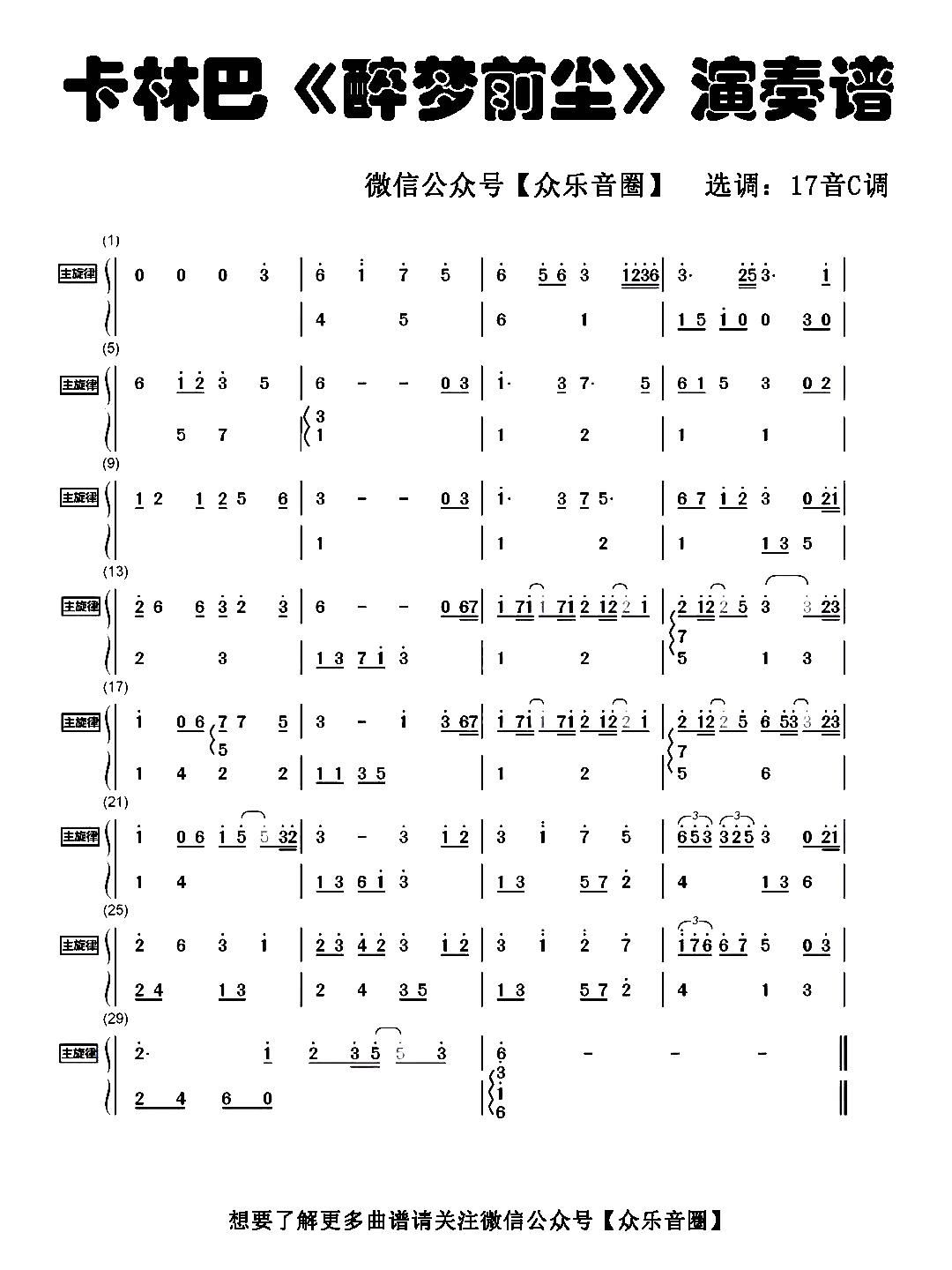 > 醉梦前尘 拇指琴卡林巴琴和弦