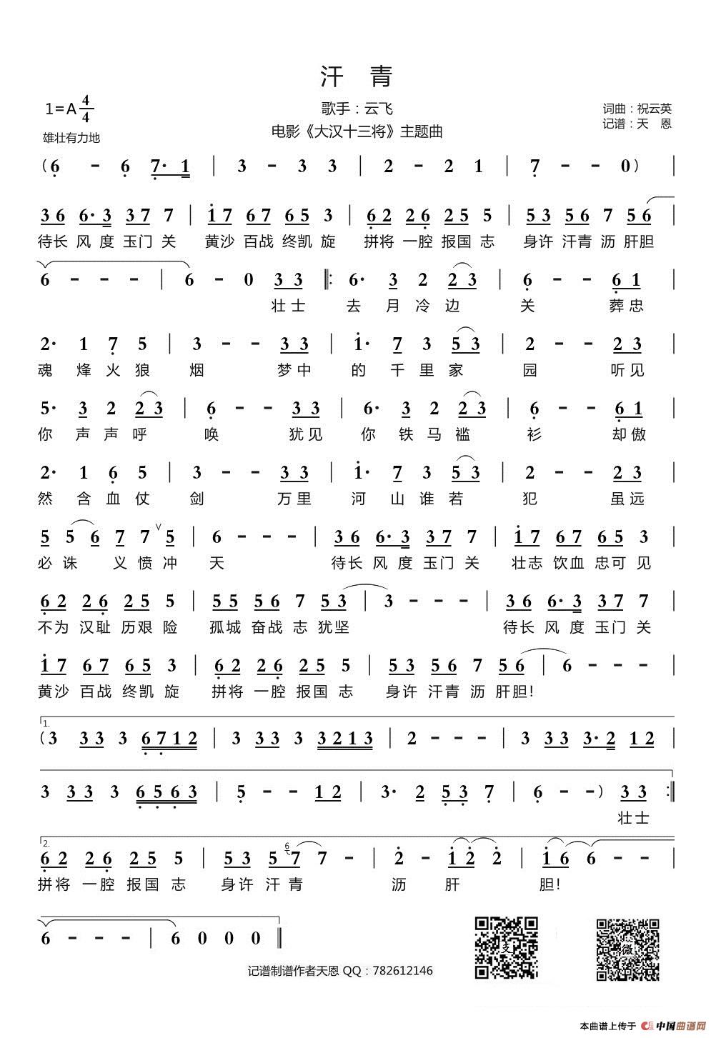 > 汗青 电影 大汉十三将 主题曲