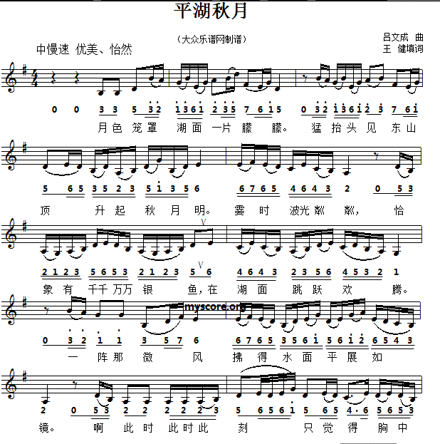 > 名曲填词歌 平湖秋月