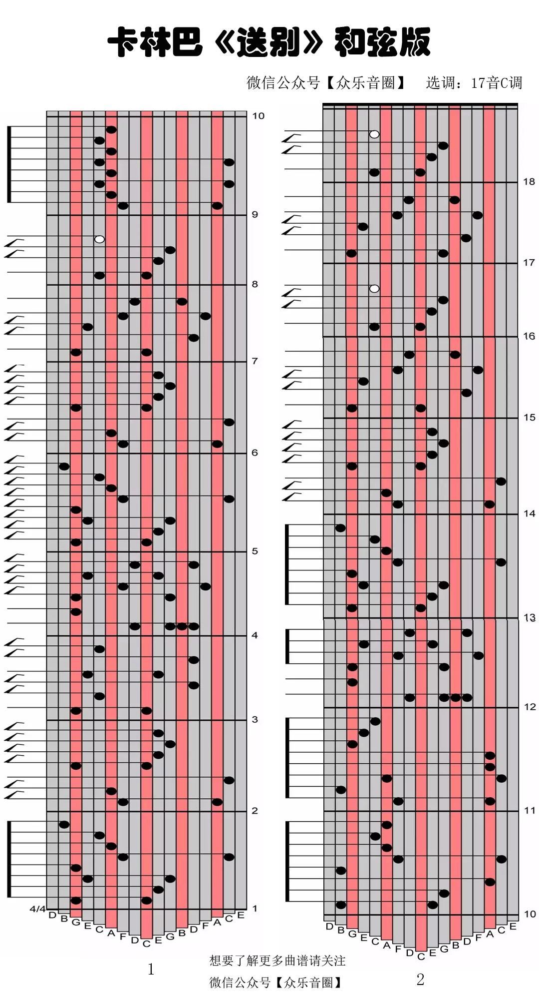 > 送别 和弦 拇指琴卡林巴琴专用谱