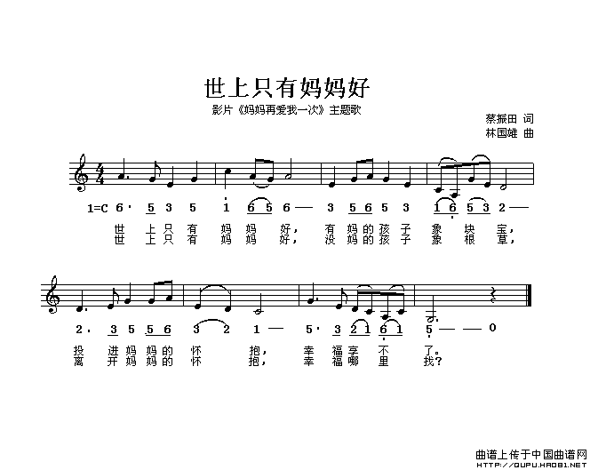 > 世上只有妈妈好 电影 妈妈再爱我一次 主题歌