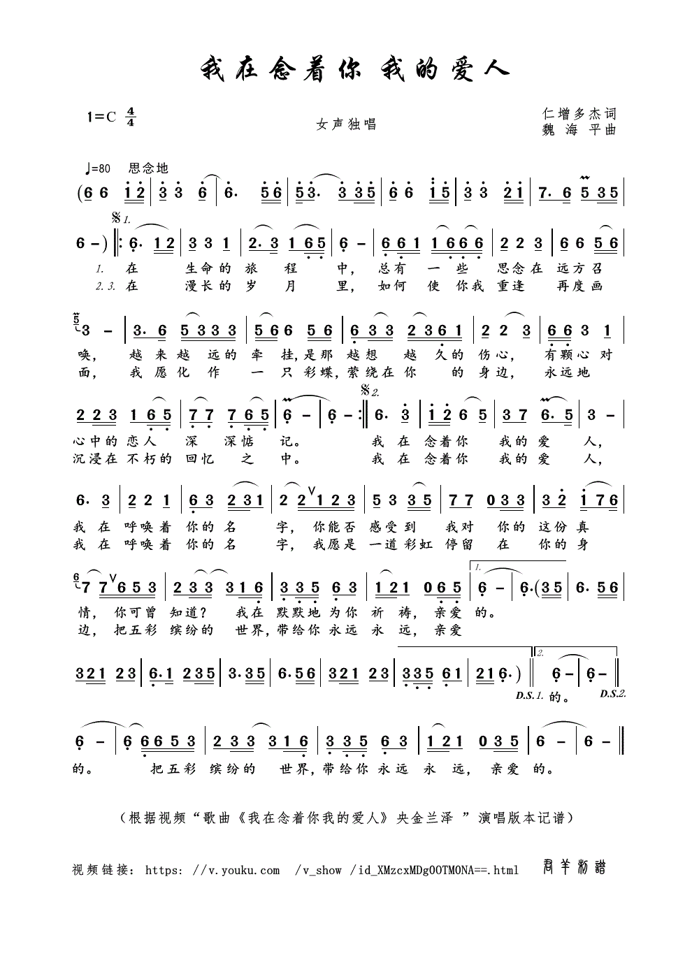 > 我在念着你 我的爱人