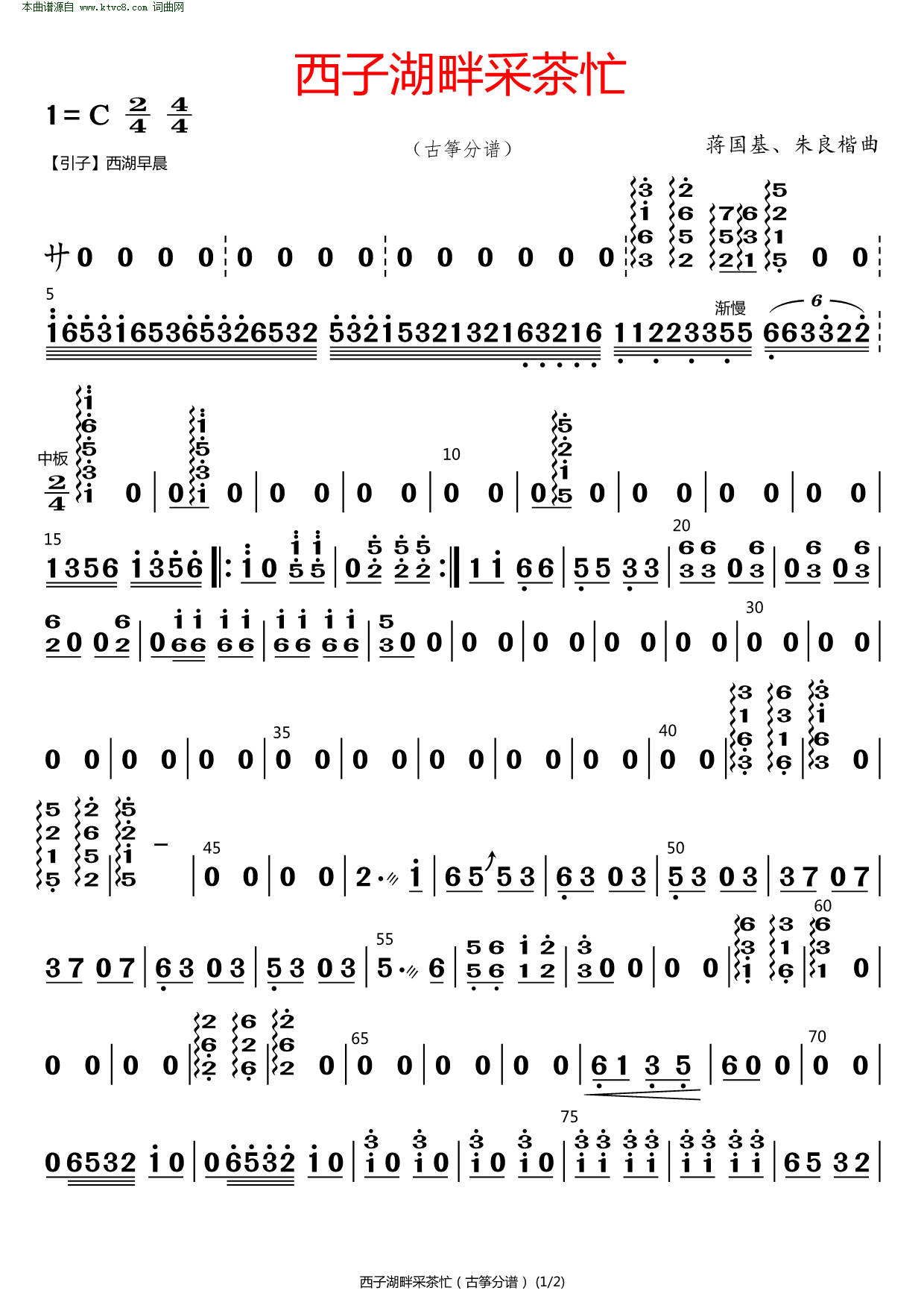 > 西子湖畔采茶忙 古筝