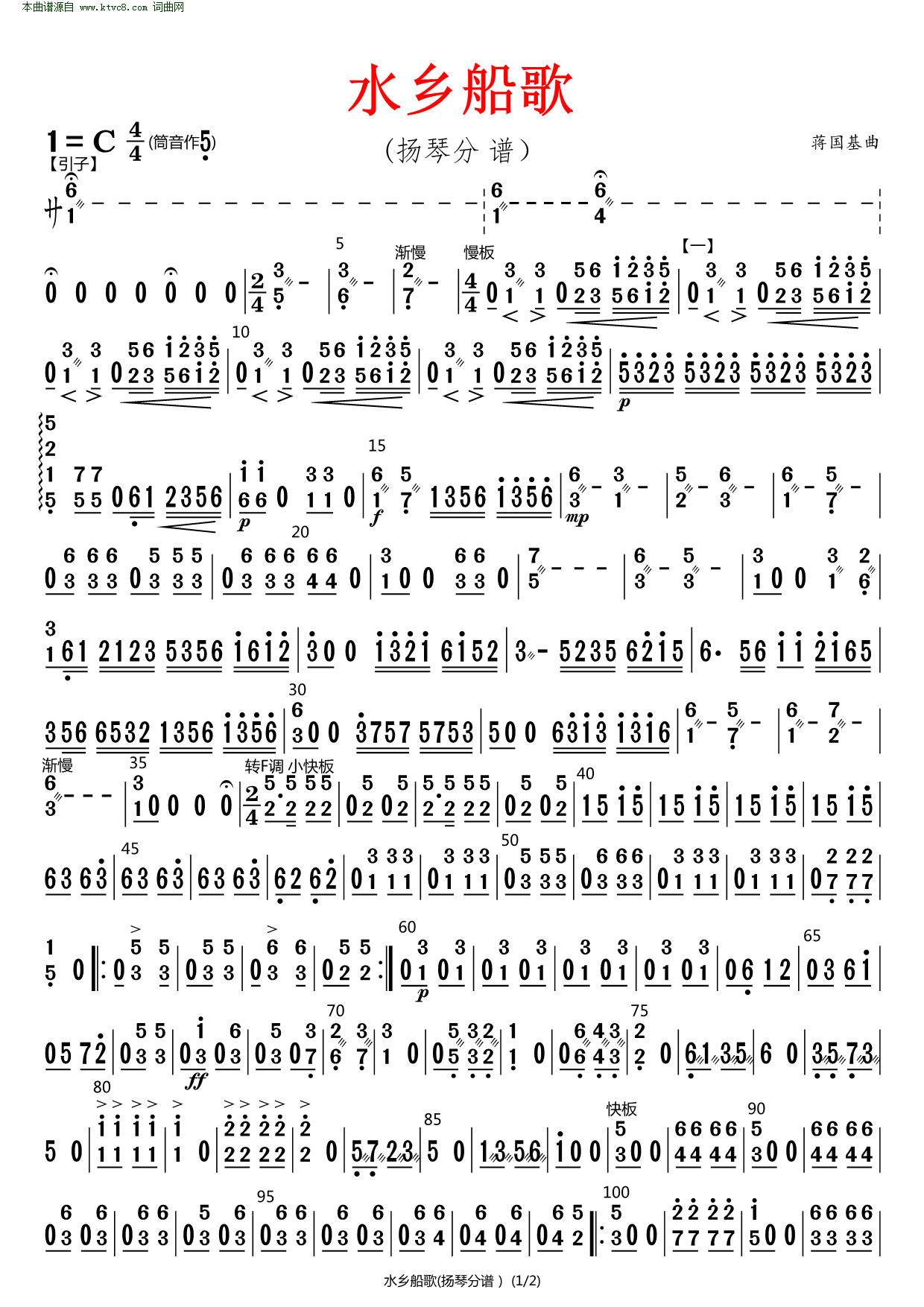 > 水乡船歌 原版伴奏 扬琴