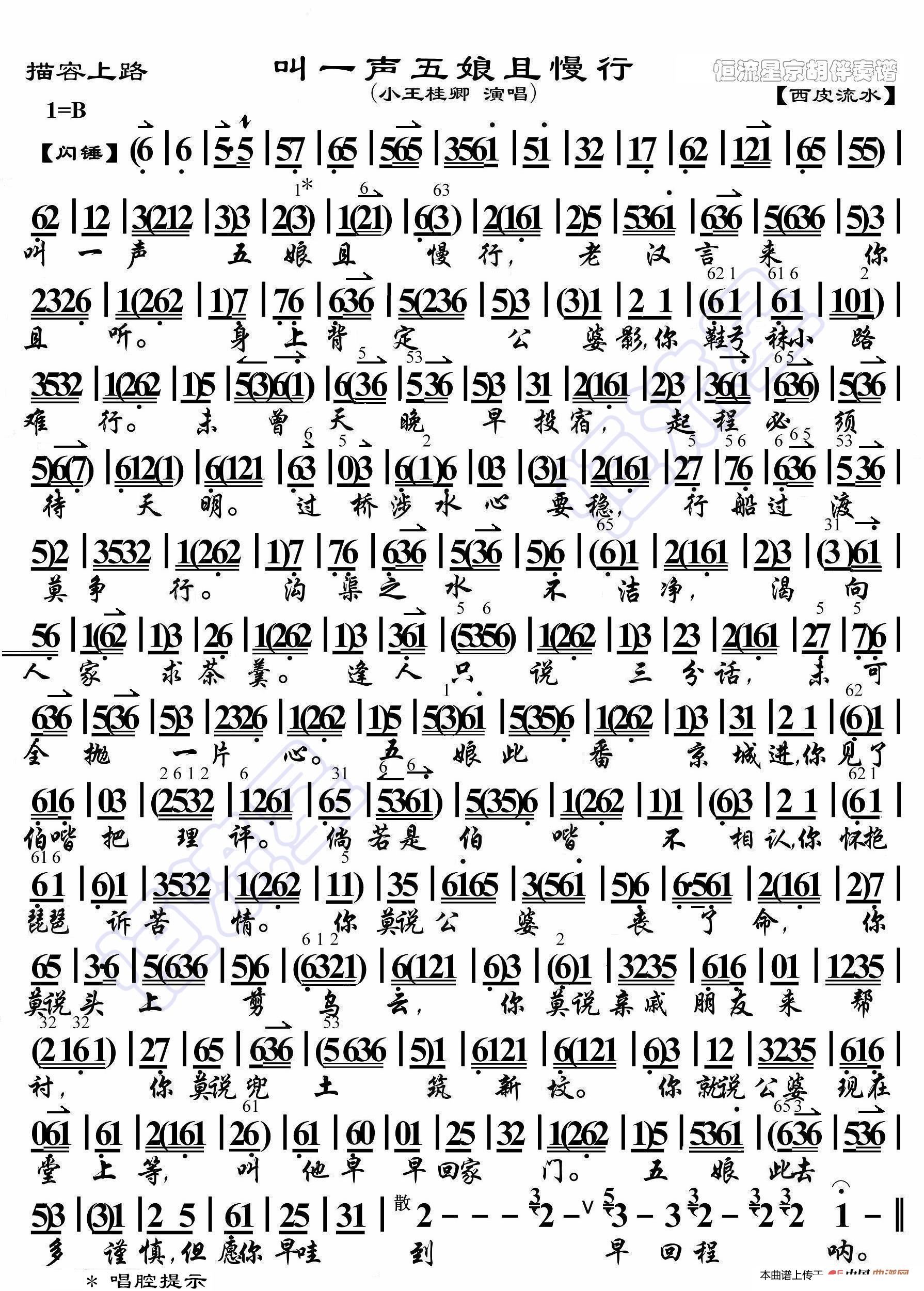 描容上路 叫一声五娘且慢行 京胡伴奏谱