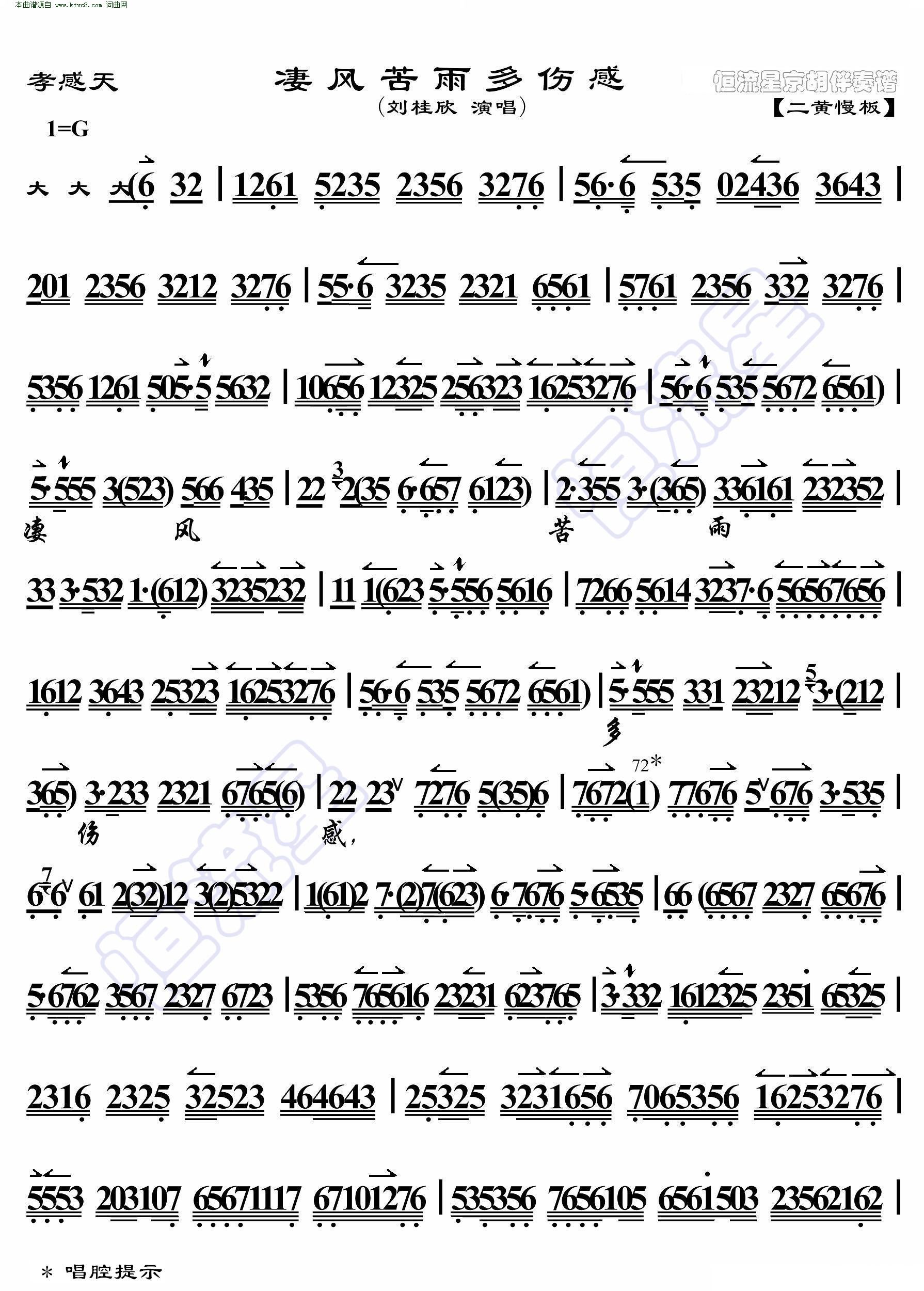 > 孝感天 凄风苦雨多伤感 京胡伴奏谱
