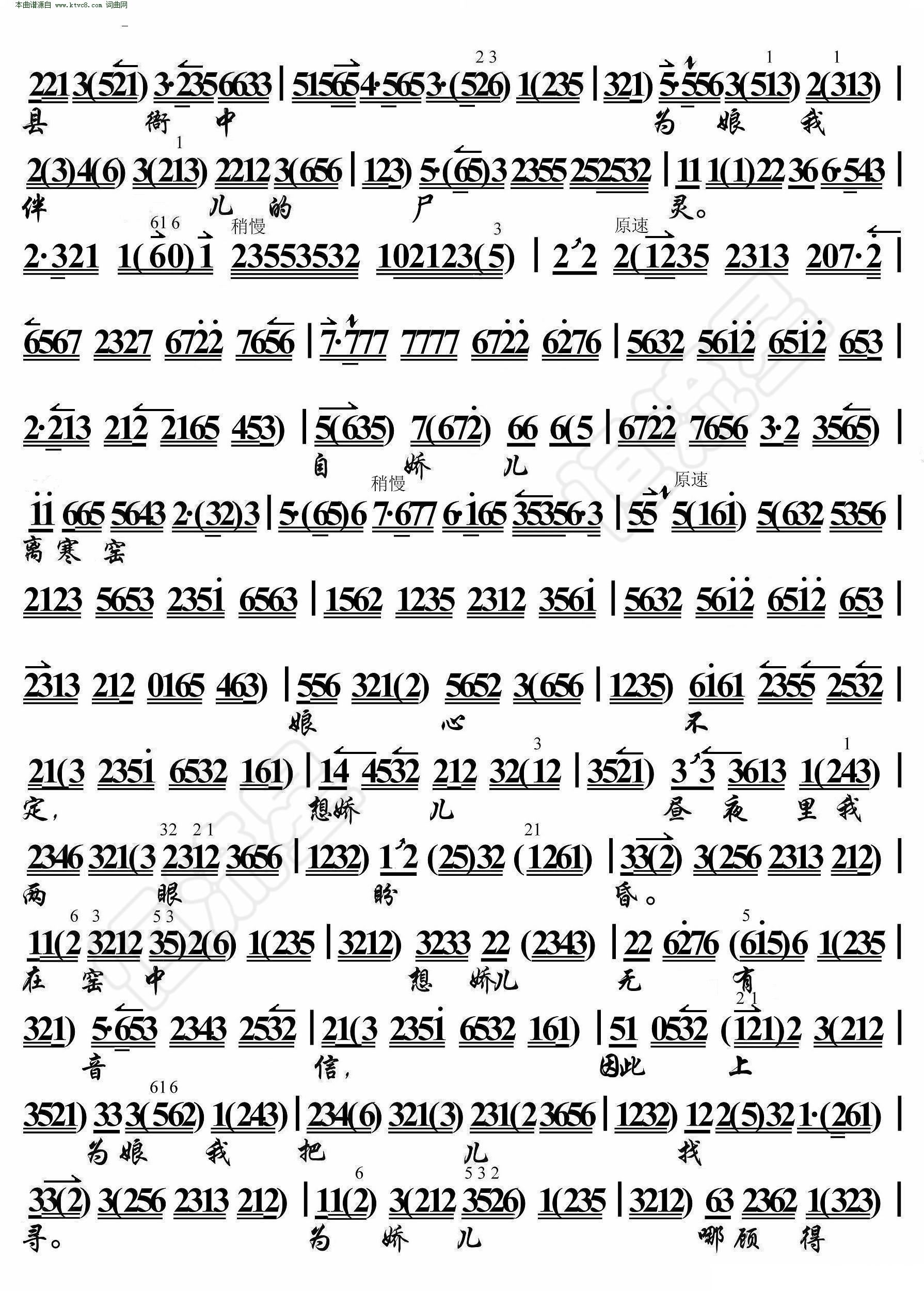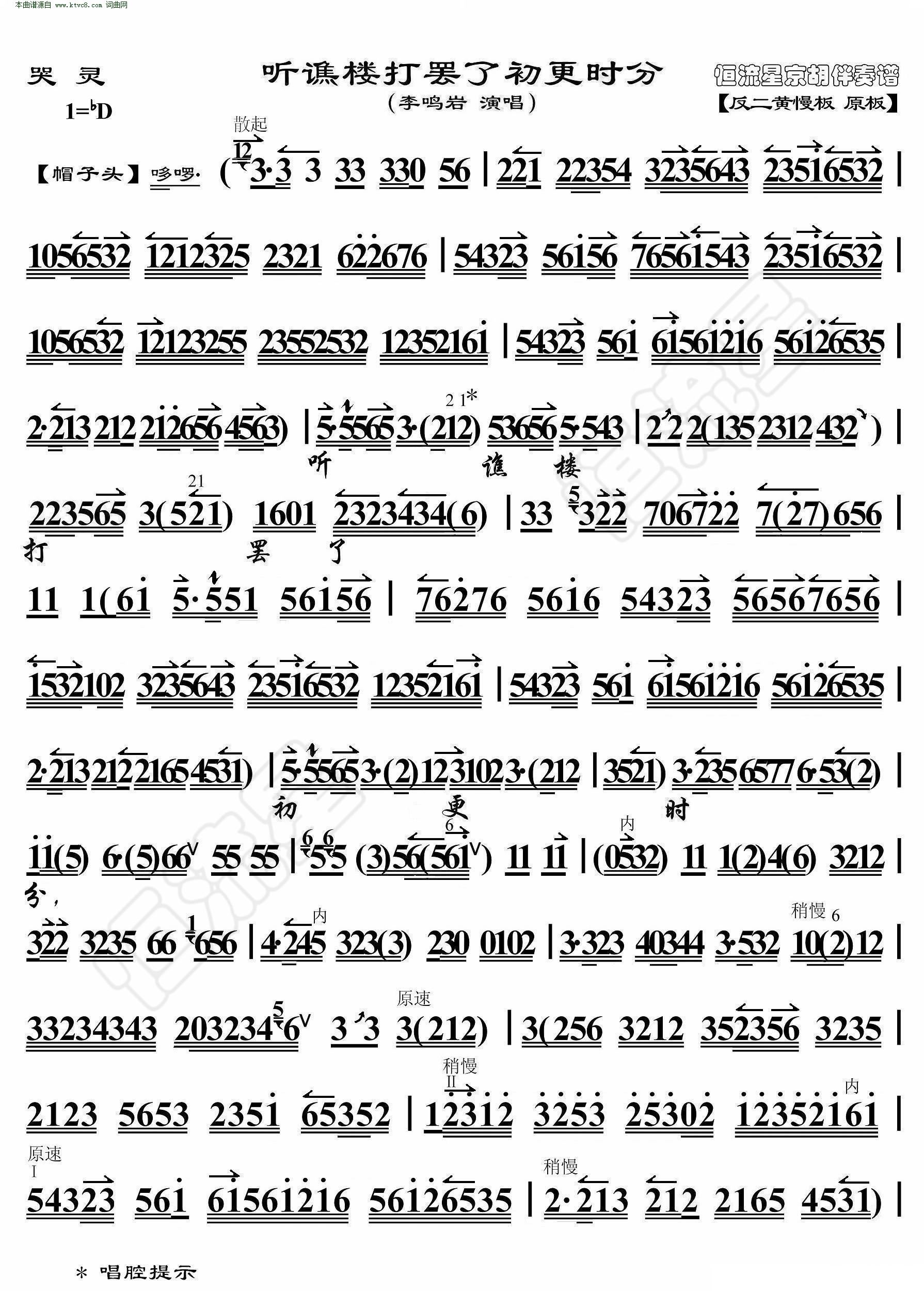 哭灵 听谯楼打罢了初更时分 京胡伴奏谱