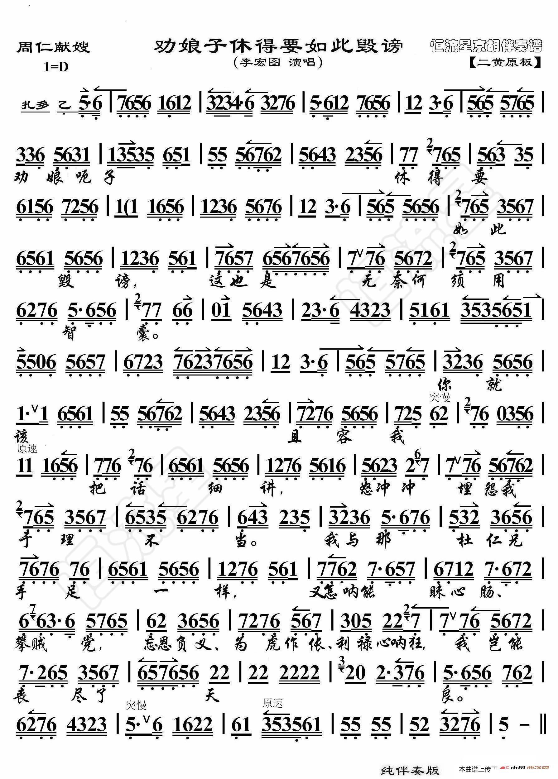 周仁献嫂 劝娘子休得要如此毁谤 京胡伴奏谱