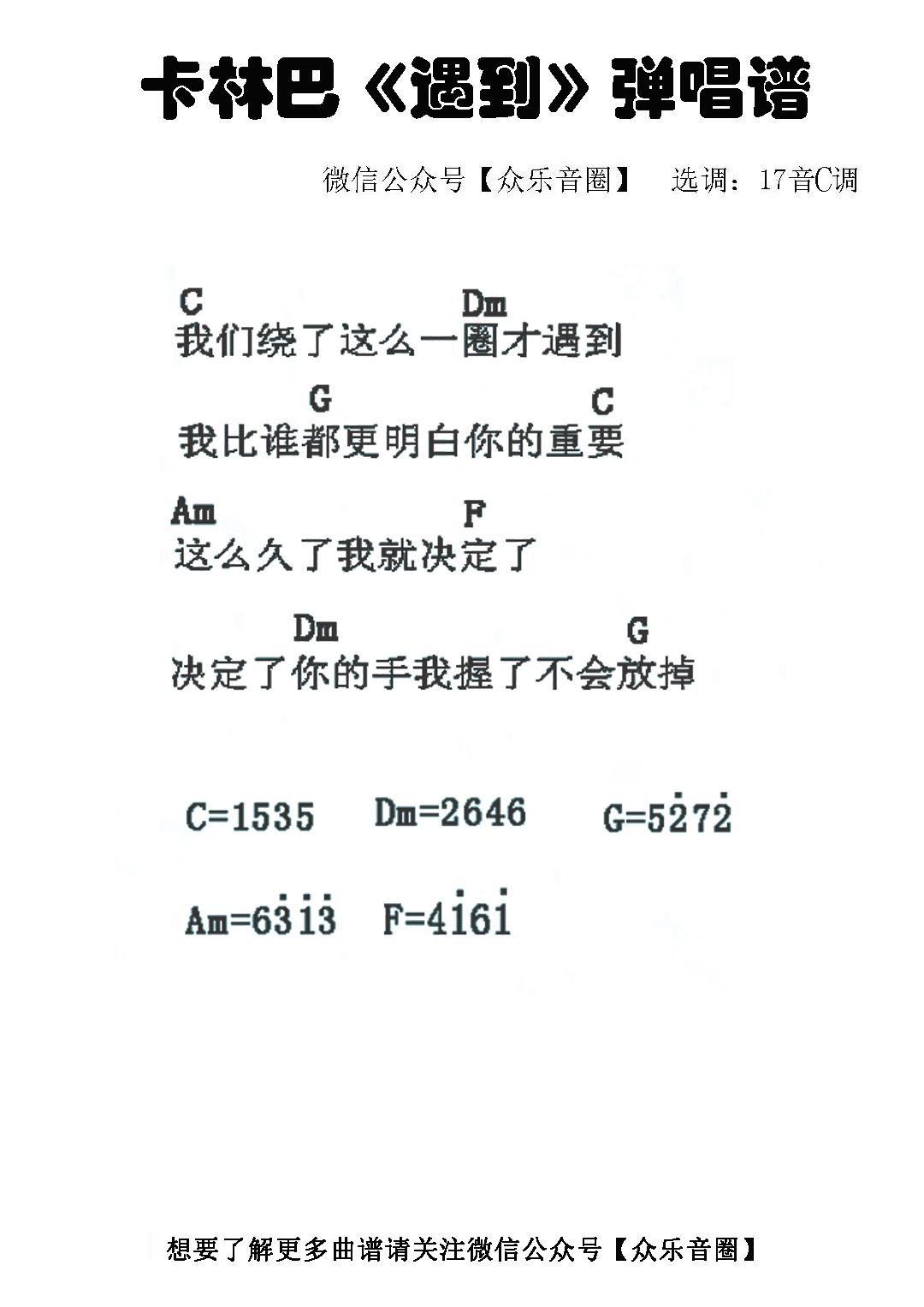 > 遇到 拇指琴卡林巴琴弹唱谱