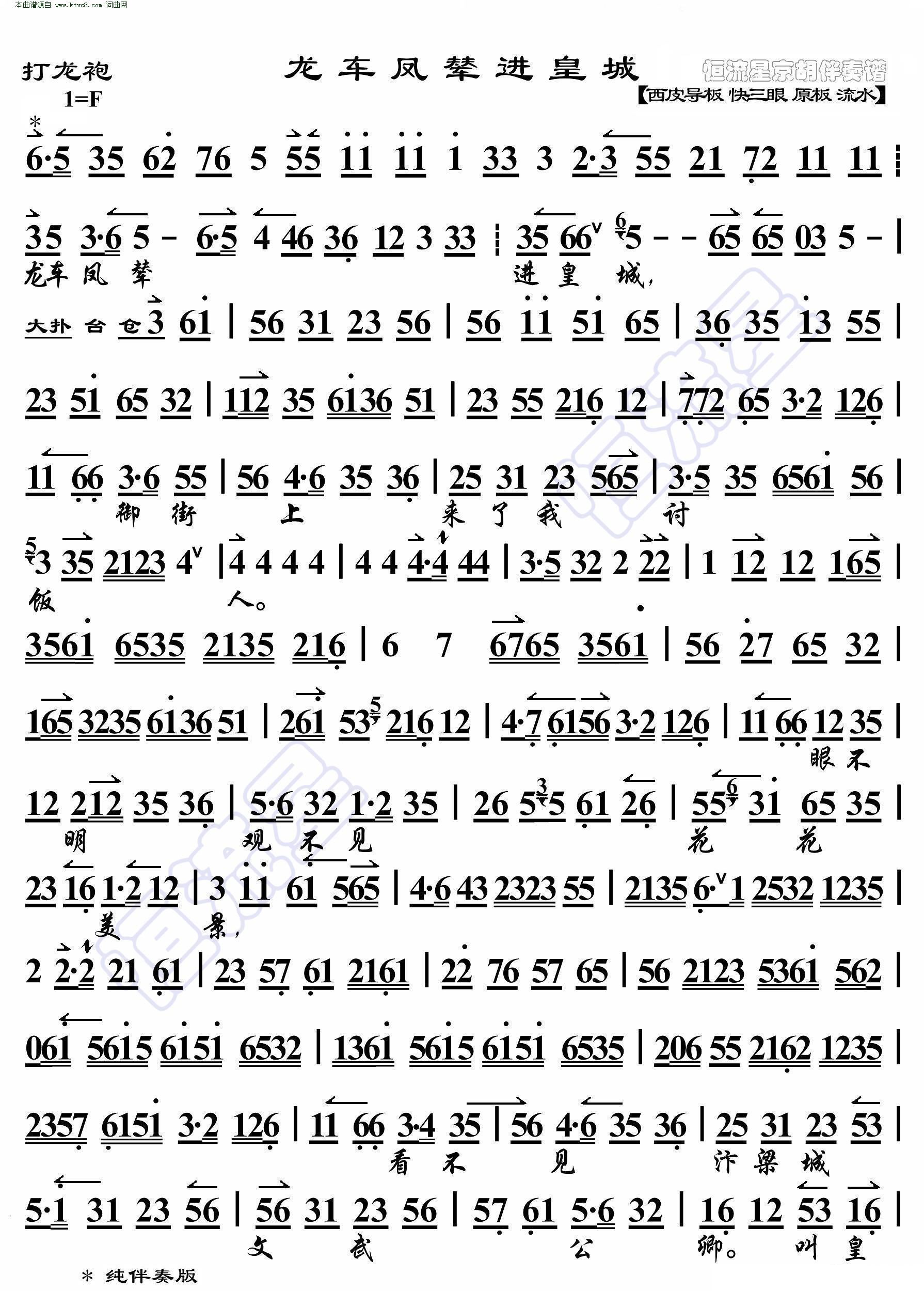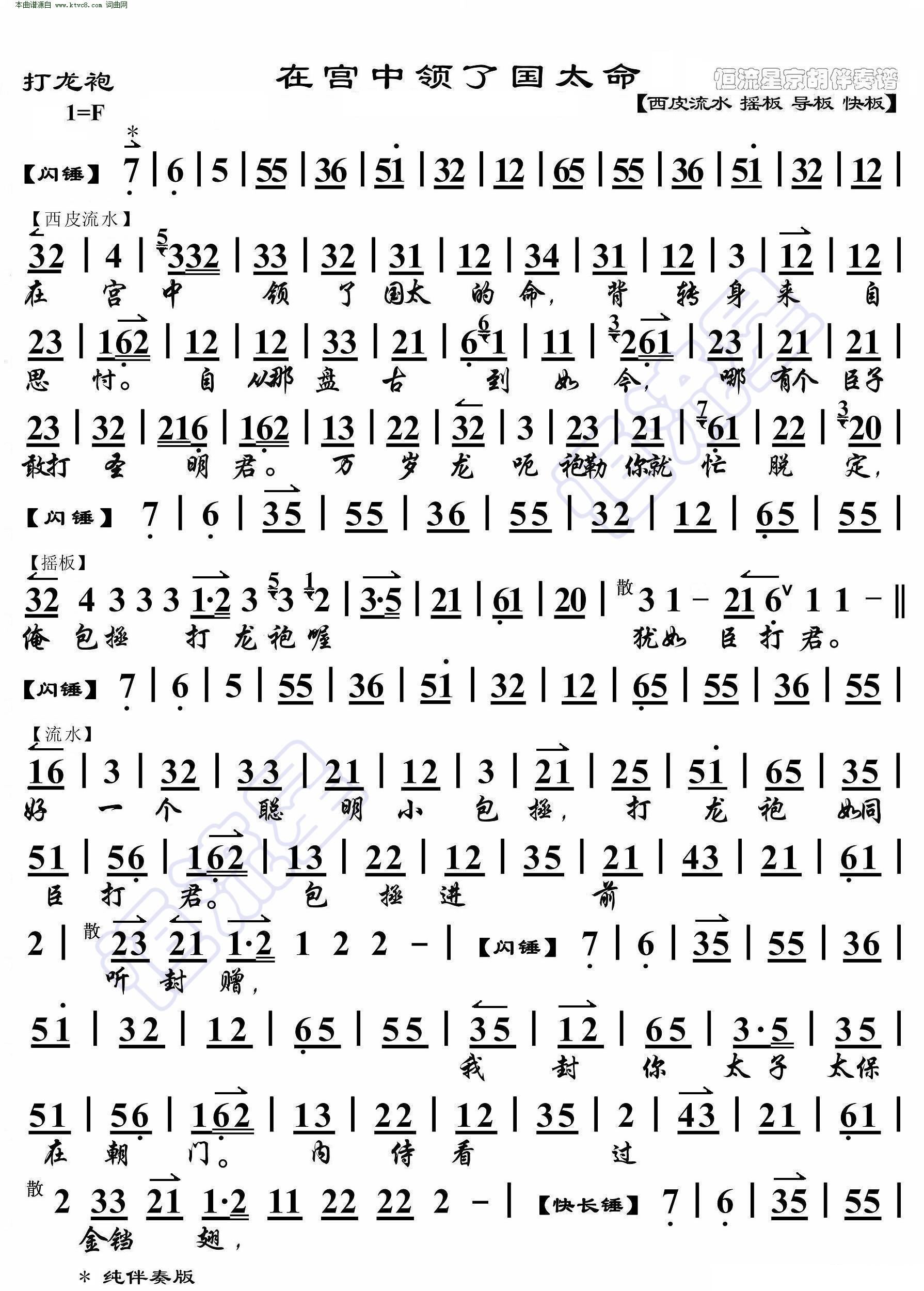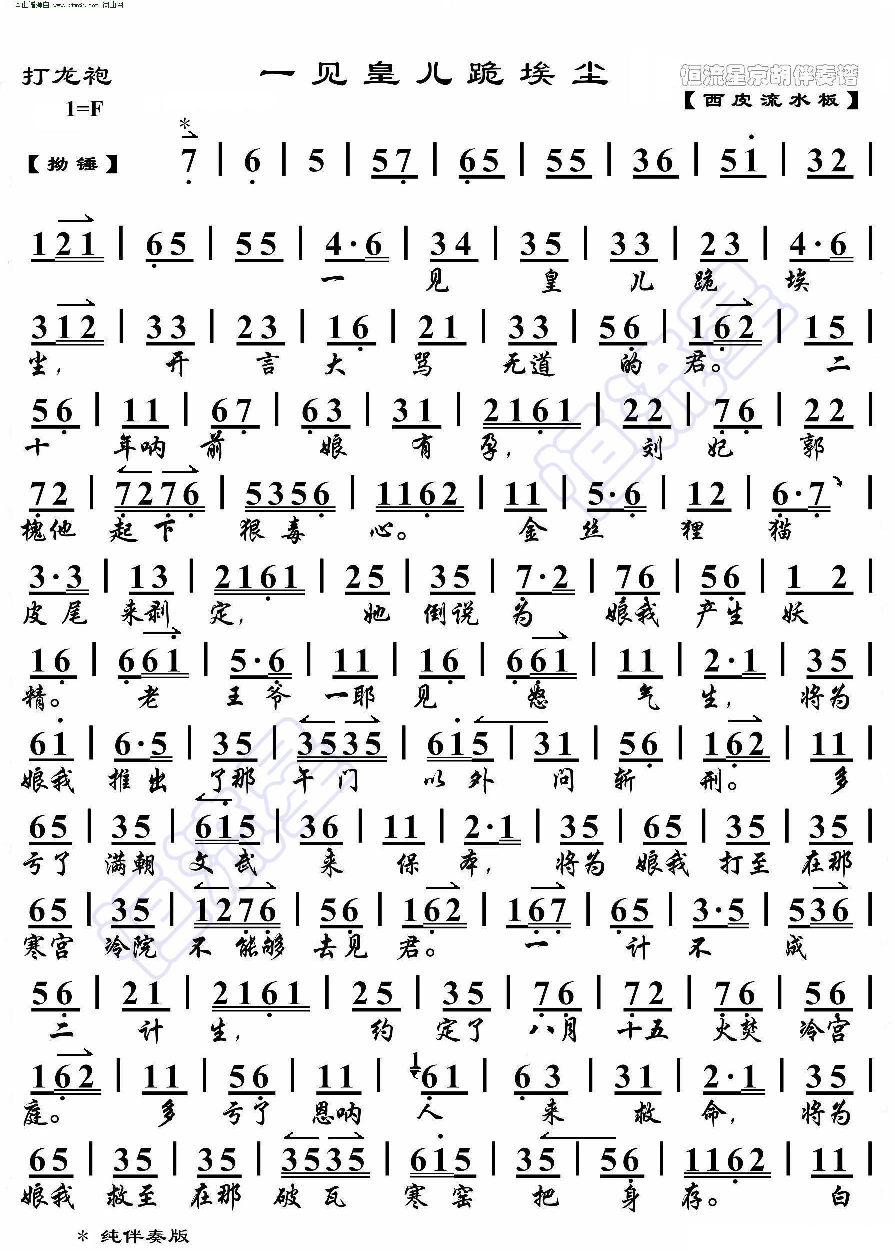 打龙袍 三个唱段综合参照纯伴奏版 京胡伴奏谱