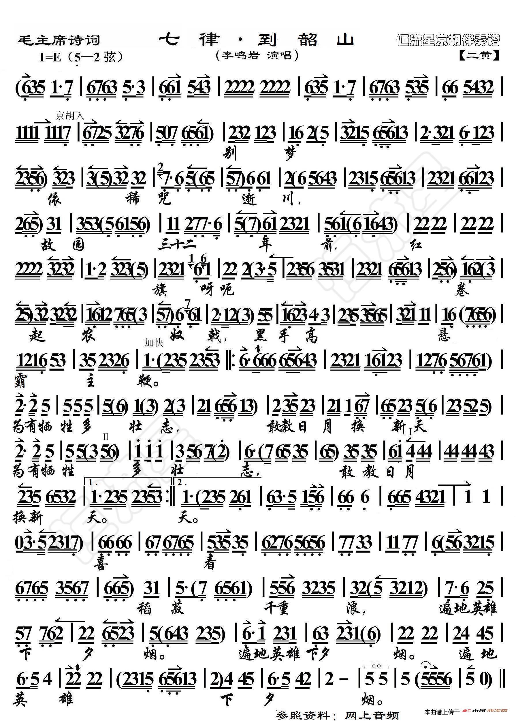 > 毛主席诗词 七律 到韶山 京胡伴奏谱