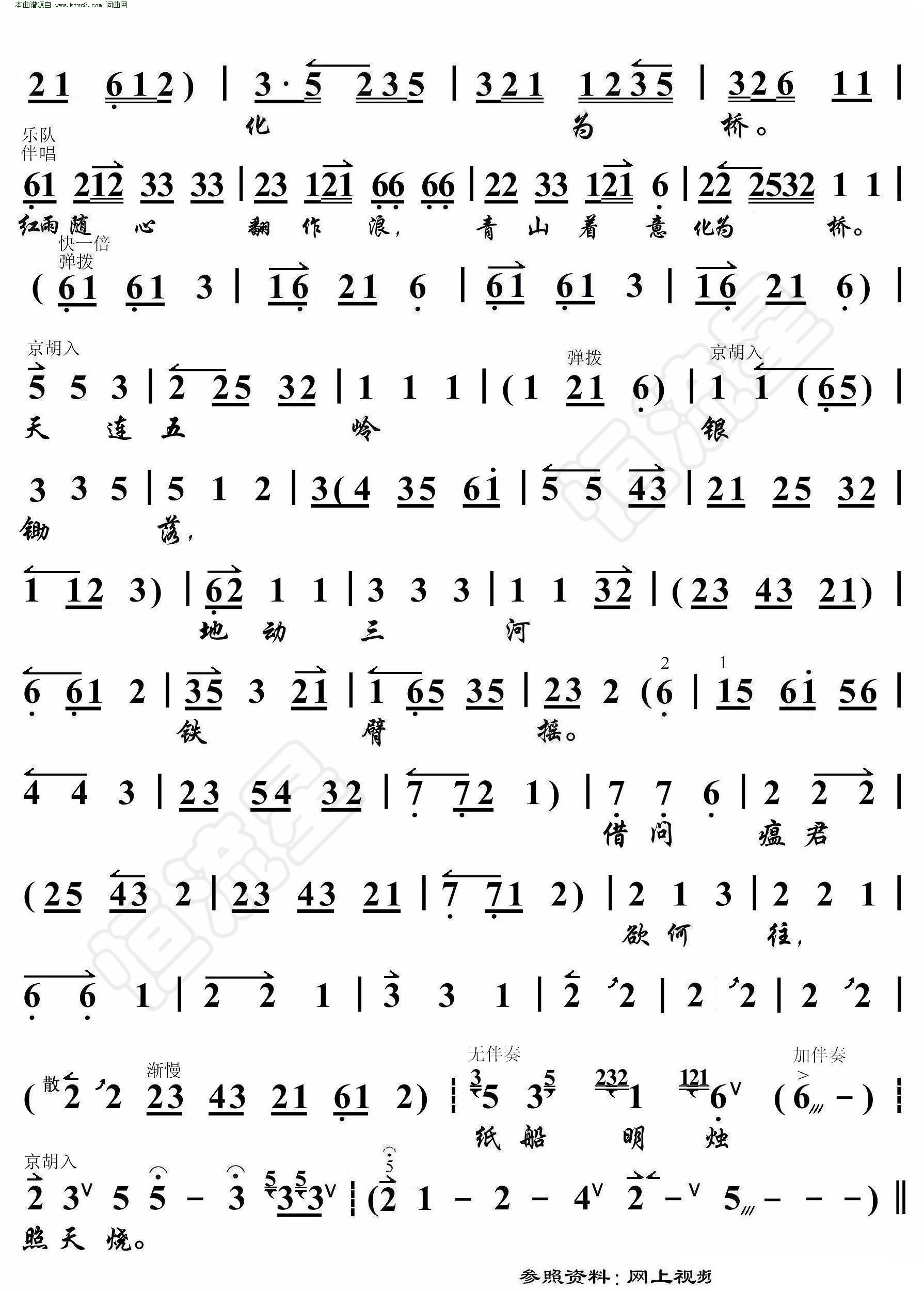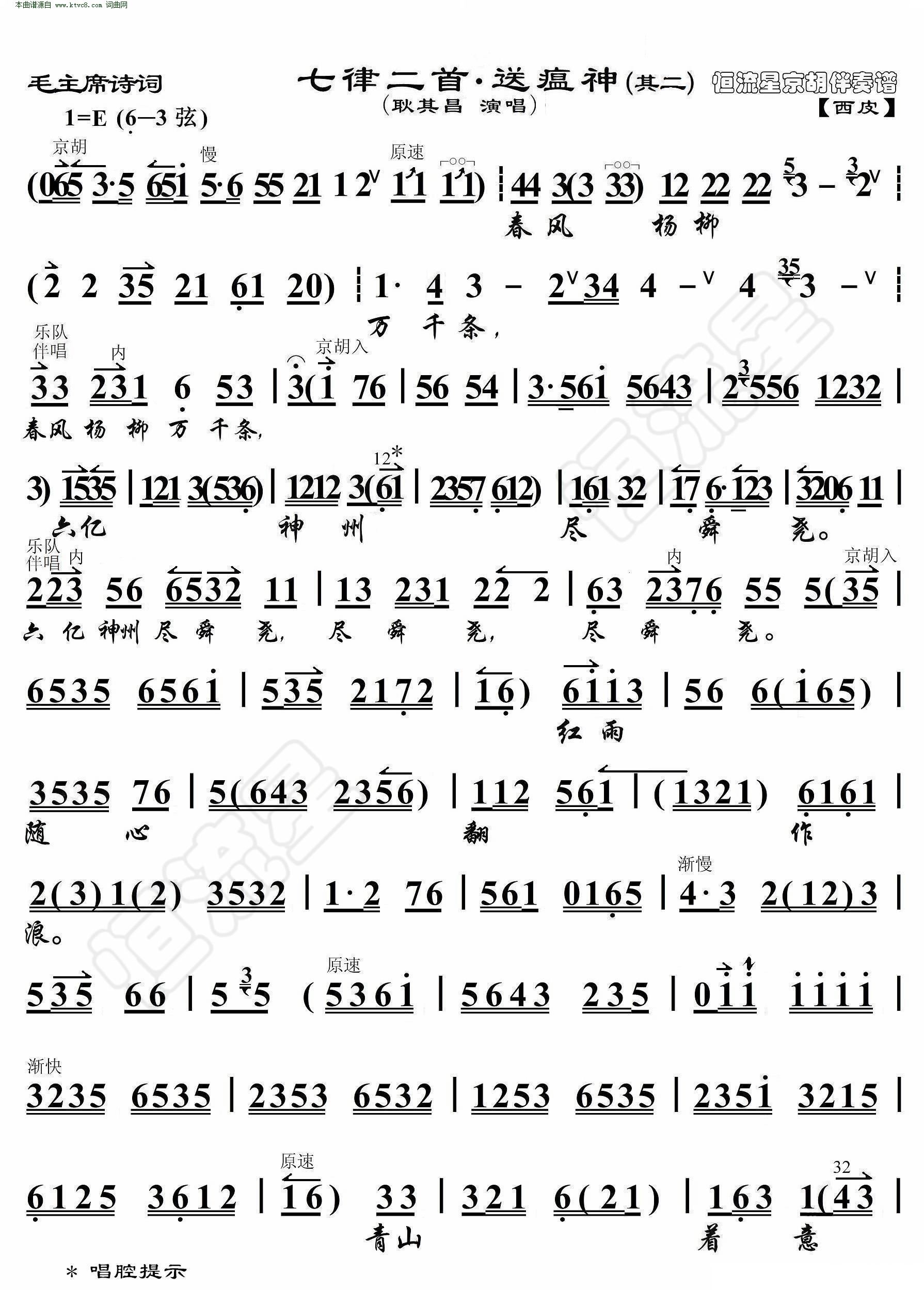 七律二首 送瘟神 毛主席诗词 其二 京胡伴奏谱