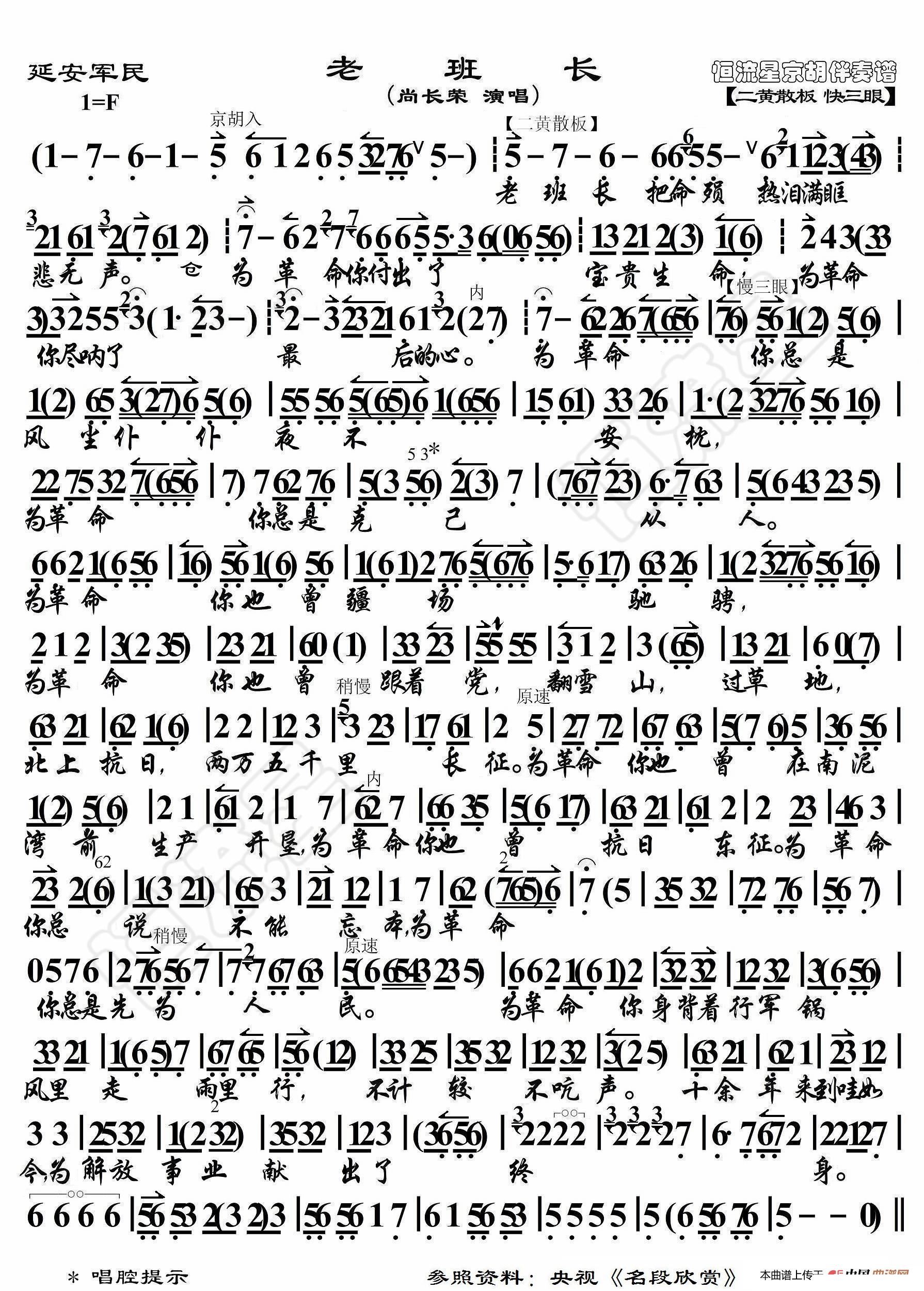 延安军民 老班长 京胡伴奏谱