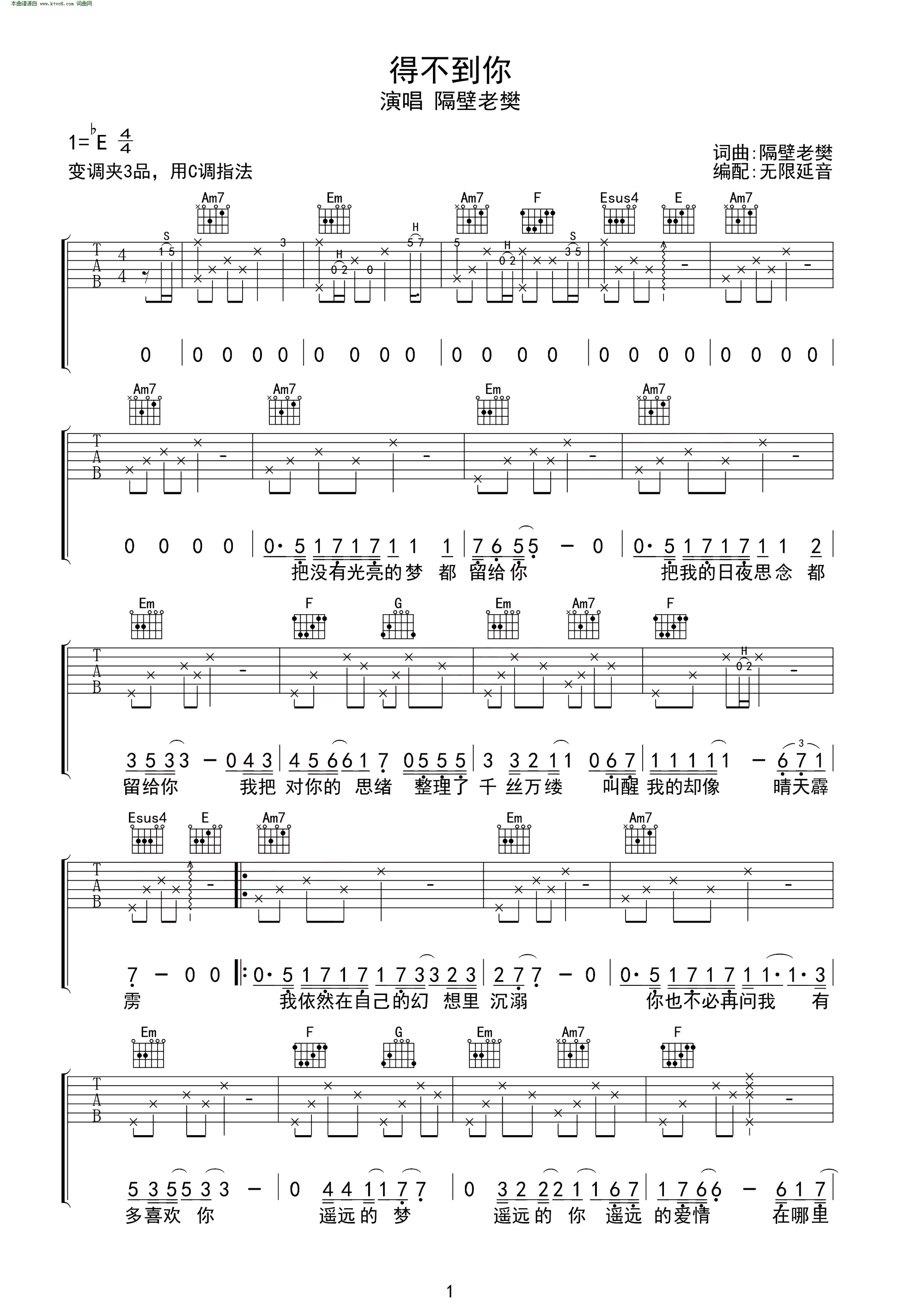 > 得不到你 无限延音编配