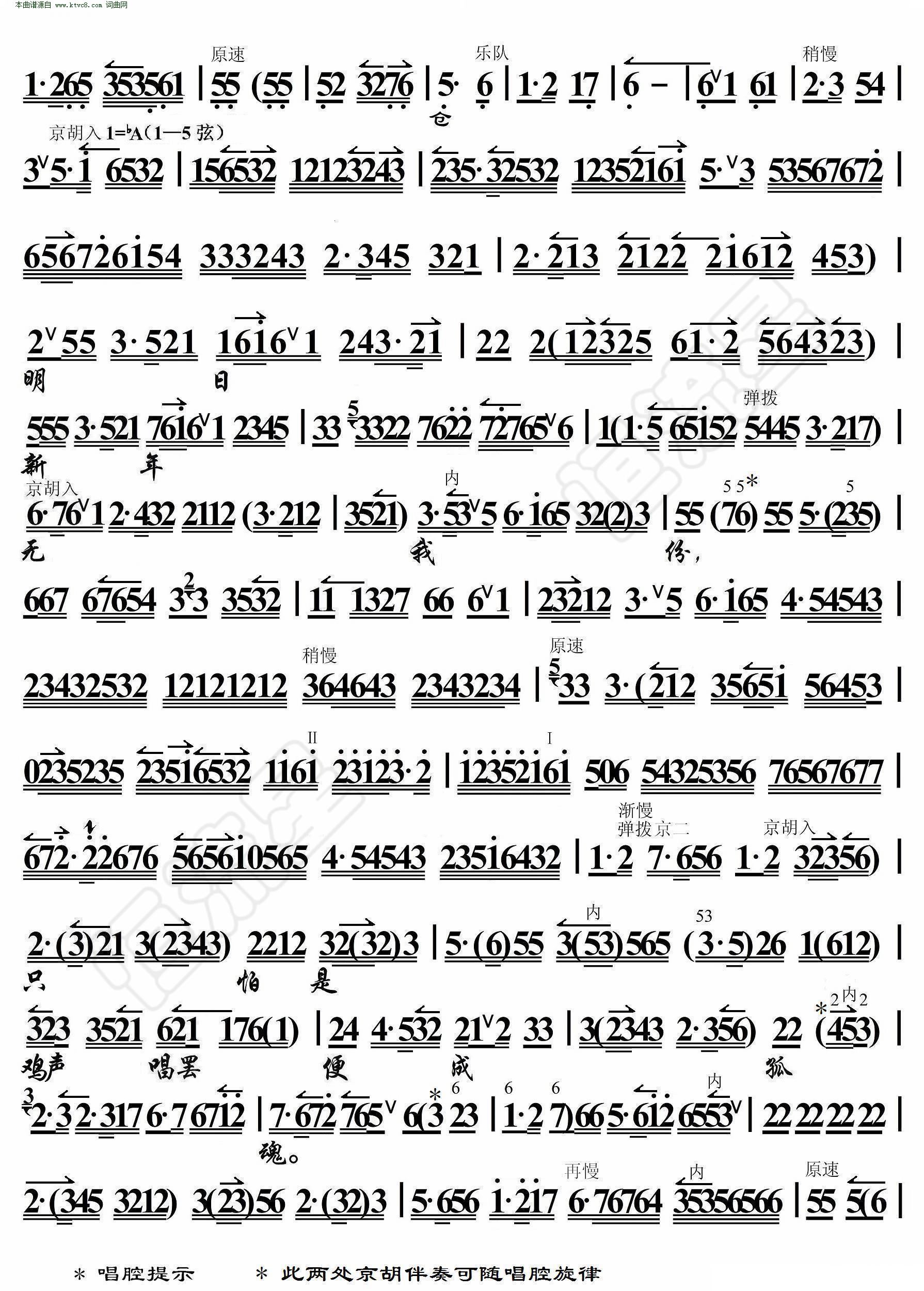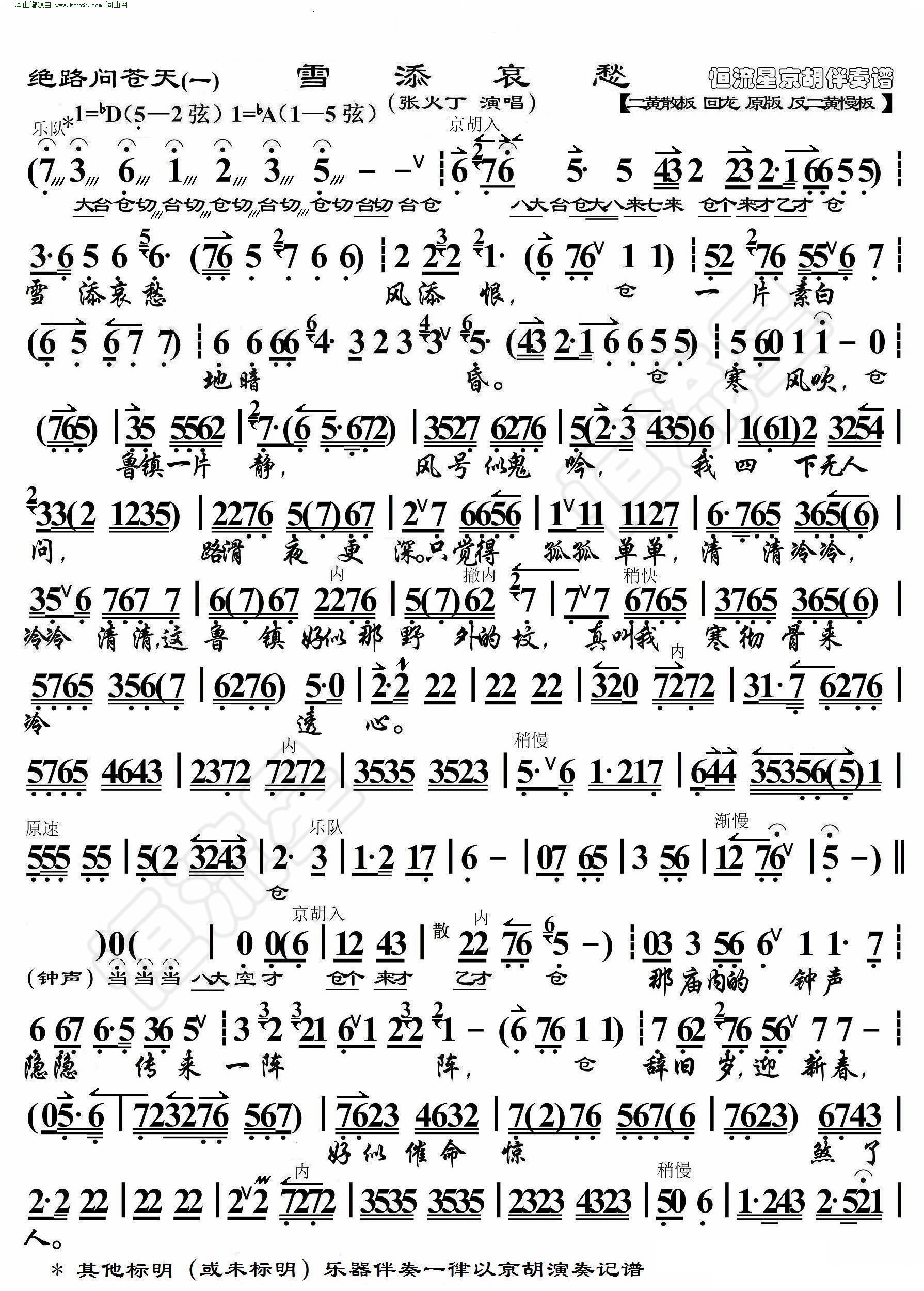 绝路问苍天 雪添哀愁 京胡伴奏谱
