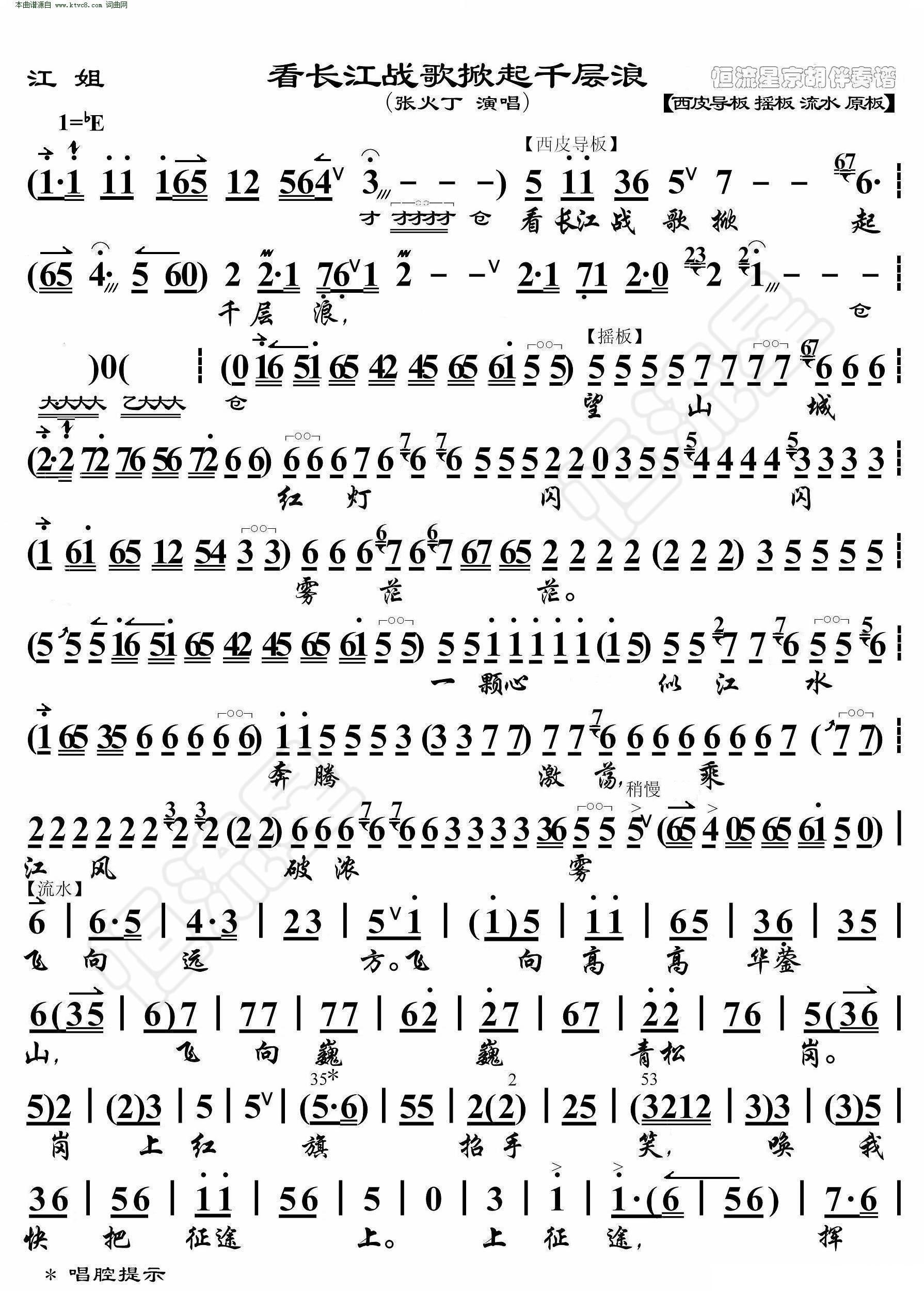 江姐 看长江战歌掀起千层浪 京胡伴奏谱