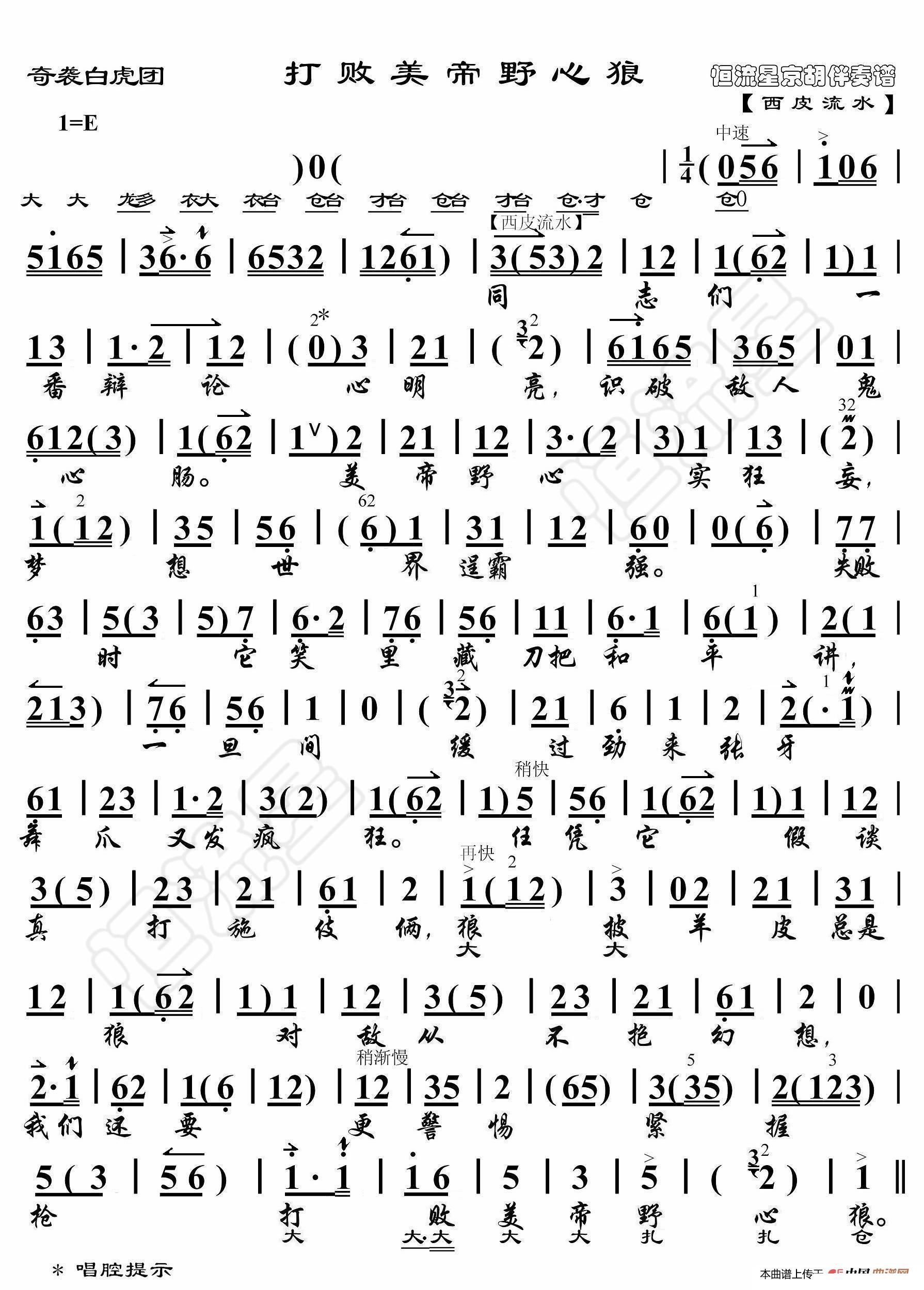 > 奇袭白虎团 打败美帝野心狼 京胡伴奏谱