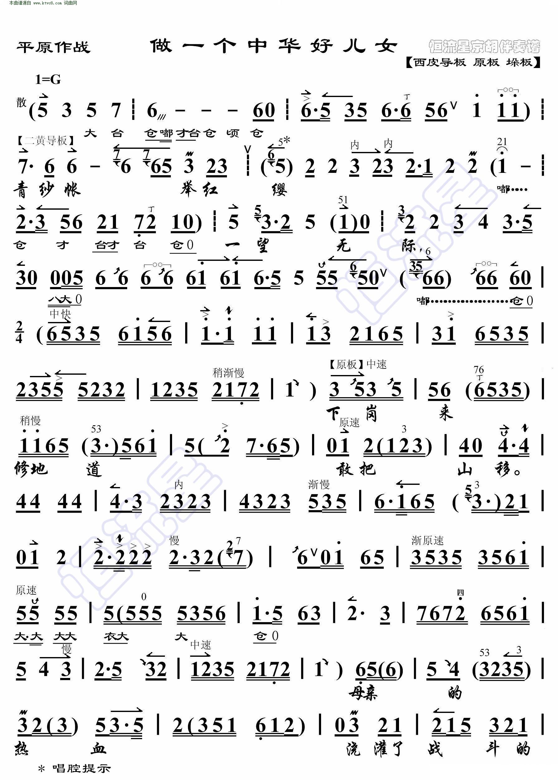 平原作战 做一个中华好儿女 京胡伴奏谱
