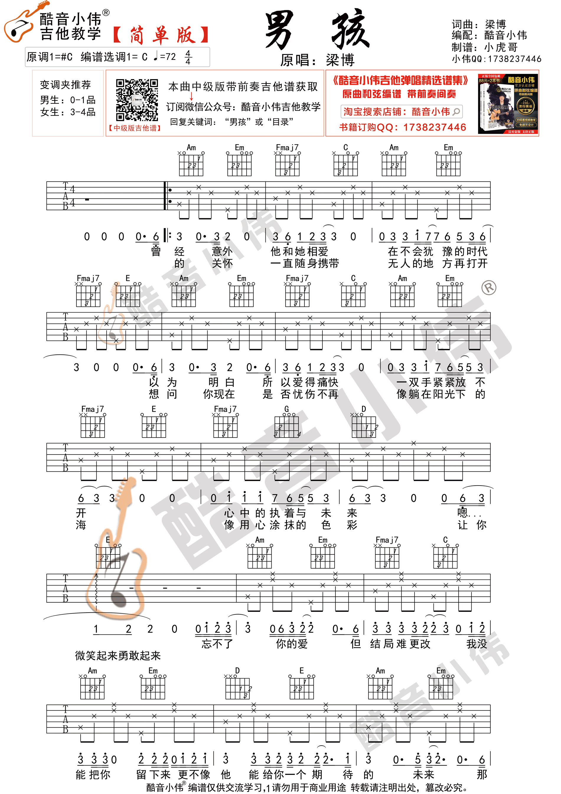 > 男孩 简单版 酷音小伟吉他弹唱教学