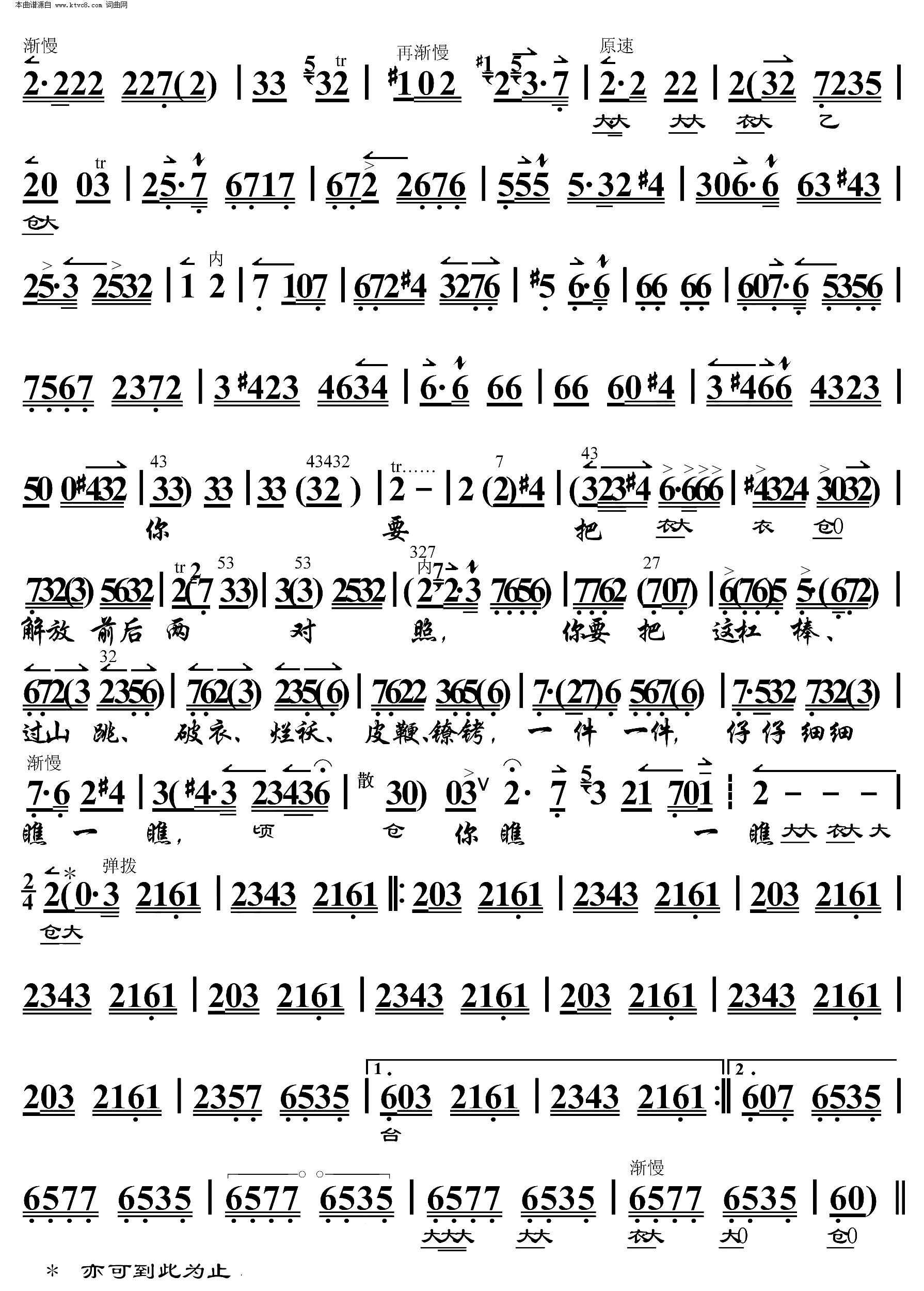 > 海港 你要把解放前后两对照 京胡伴奏谱